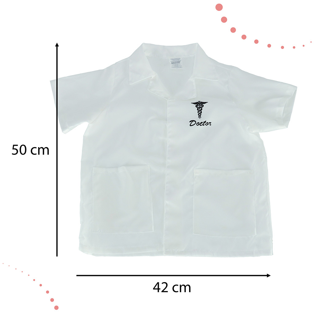 Acesta include nu doar un șorț, ci și instrumentele necesare pentru a deveni doctor, de exemplu un stetoscop!