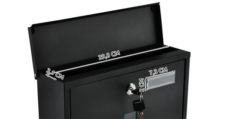 Setul conține două chei, astfel încât nu este necesar să adăugați o copie suplimentară dacă cutia este utilizată de mai multe persoane. Cutia poștală are de asemenea orificii speciale de montare. Folosind diblurile și șaibele furnizate, care servesc și ca distanțiere, este suficient să-l înșurubați pe suprafața pe care urmează să fie amplasat în final.