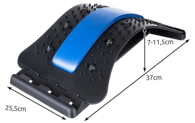 SPECIFICAȚII -material: ABS și spumă PP; vârfuri de masaj acupresur: Da; curea confortabilă din spumă: Da; trei niveluri de ajustare: Da; posibilitate de utilizare în poziție șezândă și culcată: Da; încărcare maximă: 150 kg; dimensiuni (înălțime/lățime/adâncime): 7-11,5/25,5/37cm; greutate: 0,53 kg; greutate în ambalaj: 0,64 kg
