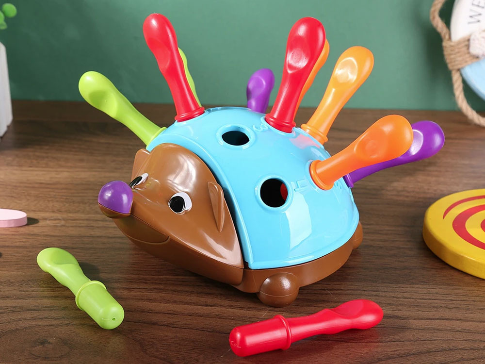 Spatele ariciului poate fi îndepărtat și țepii ascunși în interior după terminarea jocului. Setul ajută copiii mici să își dezvolte coordonarea mână-ochi, forța mâinii și alte elemente esențiale pentru dezvoltarea abilităților motorii.