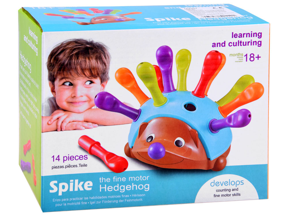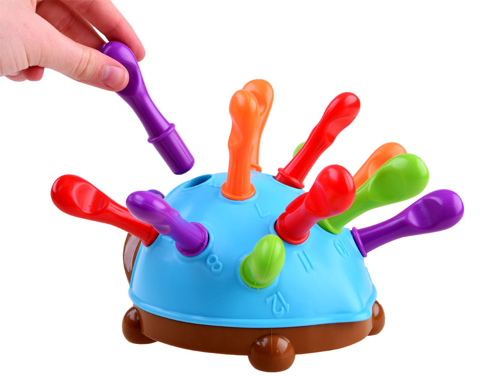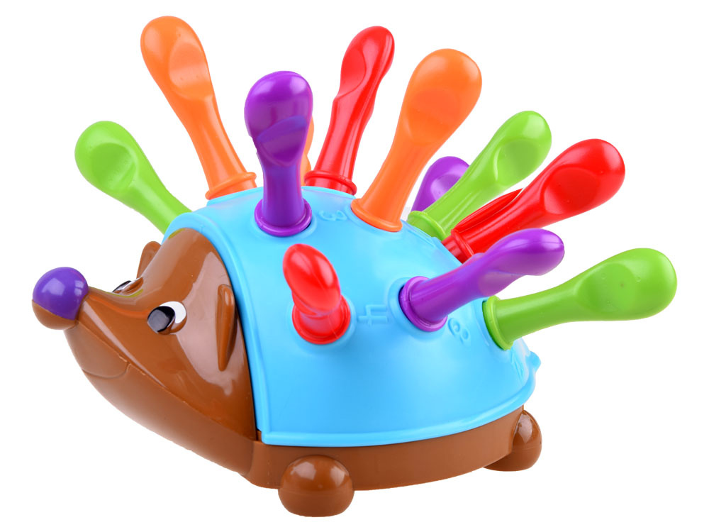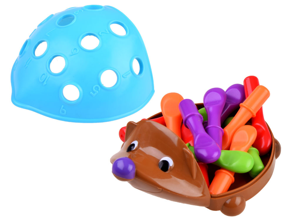 Ariciul educațional cu țepi colorati este o jucărie pentru învățare și distracție.Ariciul zâmbitor are 12 țepi colorați și siguri, care vor permite copilului să învețe să numere, culorile și să exerseze dexteritatea manuală.Distracția constă în introducerea și scoaterea țepilor din spatele ariciului, numirea culorilor acestora și învățarea numerelor de la 1 la 12.