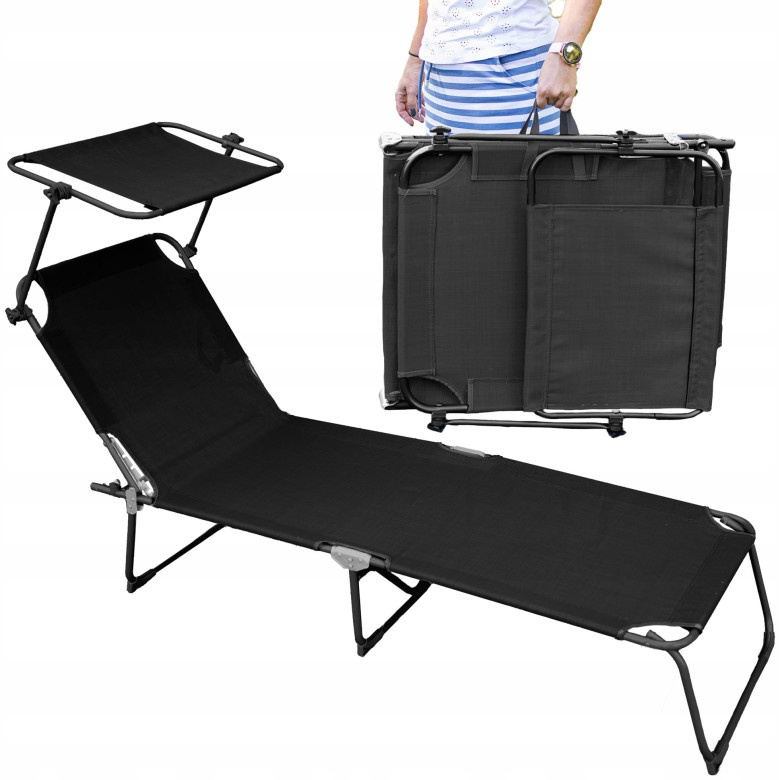 ȘEZLONG DE GRĂDINĂ PLIABIL Investiți într-un colț de relaxare în aer liber cu acest șezlong de grădină pliabil elegant. Șezlongul este fabricat din aluminiu durabil și ușor, care garantează stabilitate și manipulare ușoară. Ideal pentru grădină, terasă sau lângă piscină. Copertina șezlongului oferă umbră plăcută în zilele fierbinți și vă protejează de soare. SPECIFICAȚII: ✅ Dimensiunea copertinei: 43 x 38 cm ✅ Înălțimea de la podea: 26 cm ✅ Lățimea șezlongului: 55 cm ✅ Culoare: negru ✅ Capacitate maximă de încărcare: 120 kg ✅ Greutate: 4,7 kg
