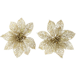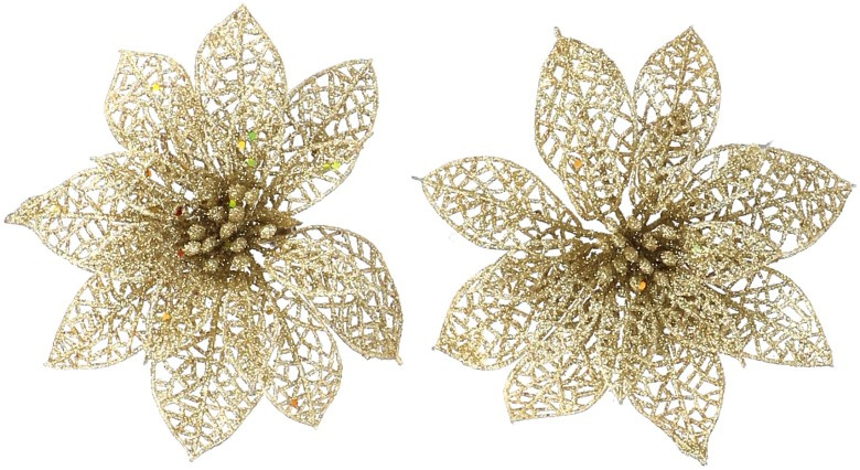 Flori aurii sclipitoare pe un clips pentru bradul de Crăciun