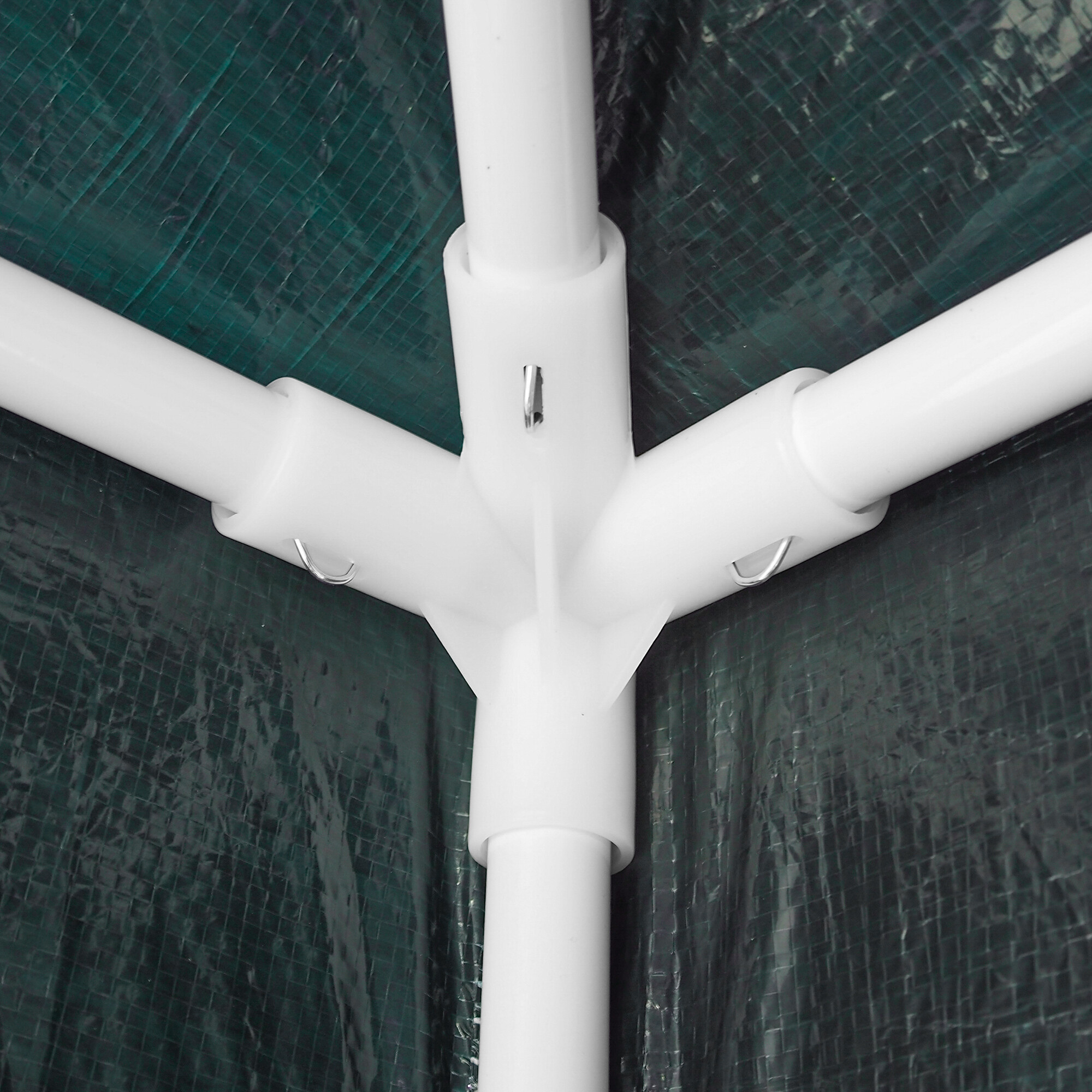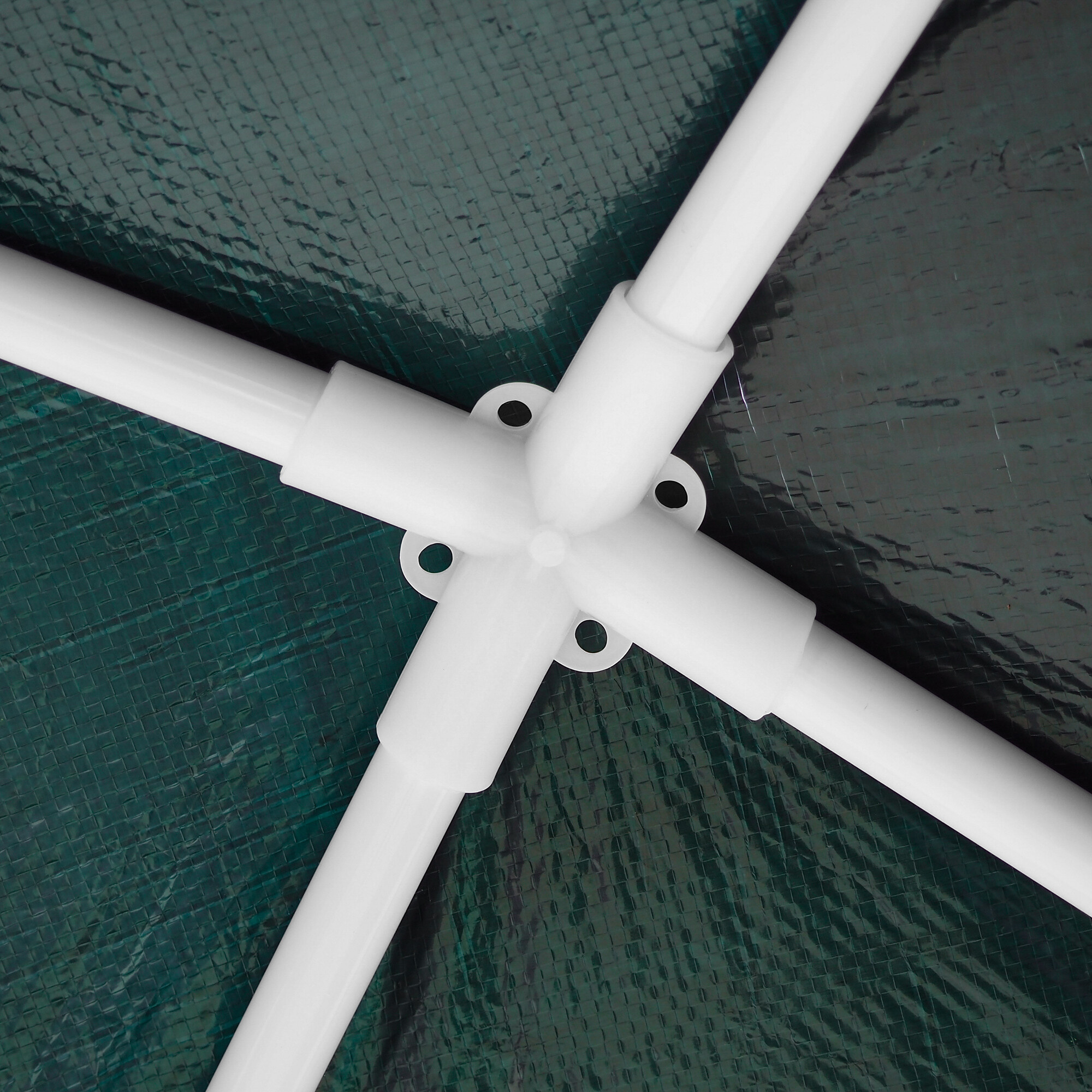 Acoperișul foișorului este fabricat din polietilenă rezistentă cu o greutate de 100g/m2, care este rezistentă la rupere și radiații UV. Acest material asigură o durată lungă de viață și o întreținere ușoară. Este suficient să-l ștergeți simplu cu o cârpă umedă și foișorul va fi din nou ca nou.