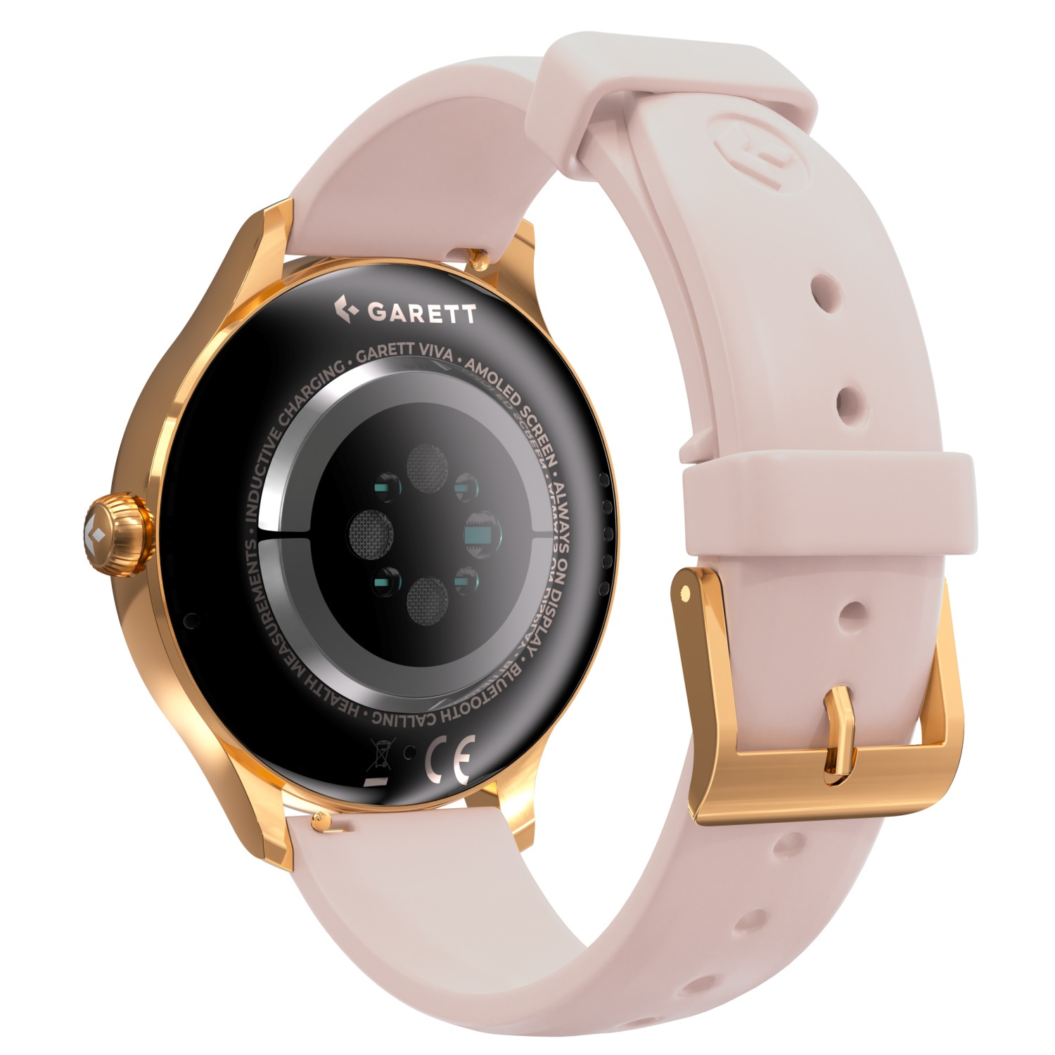 Garett Viva oferă un design unic și combină tehnologia cu funcționalitatea. Echipat cu un ecran AMOLED și posibilitatea de personalizare a cadranului ceasului împreună cu curele și brățări interschimbabile, oferă aproape posibilități nelimitate de adaptare conform preferințelor personale ale utilizatorului. Pe de altă parte, pentru sănătate oferă mai mult de 100 de moduri sportive diferite, precum și un monitor al ritmului cardiac, un pulsoximetru, un monitor al tensiunii arteriale, monitorizarea somnului și alte măsurători de sănătate. În plus, comunicarea fiabilă prin Bluetooth și notificările de pe telefon îl fac un însoțitor ideal pentru viața de zi cu zi.
