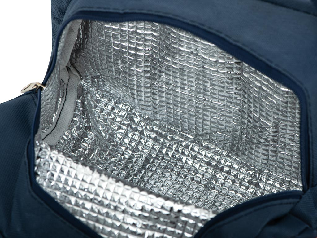 În interior are un strat de folie termoizolantă, care menține alimentele la temperatura corectă și mai proaspete pentru mai mult timp.