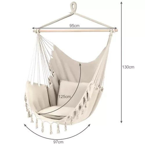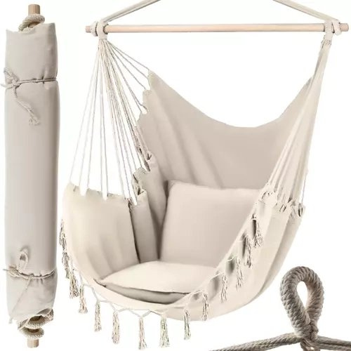 CONFORTABIL – acest hamac extrem de confortabil și funcțional – scaun brazilian, vă permite să vă relaxați în condiții favorabile.Va fi perfect pentru grădină, terasă, balcon și chiar și în cameră! O veți folosi în timpul unei sieste după cină, unui somn scurt sau relaxării cu o carte sau o revistă.