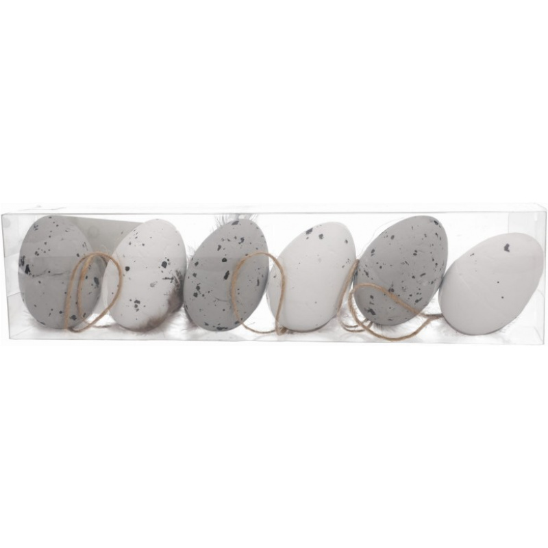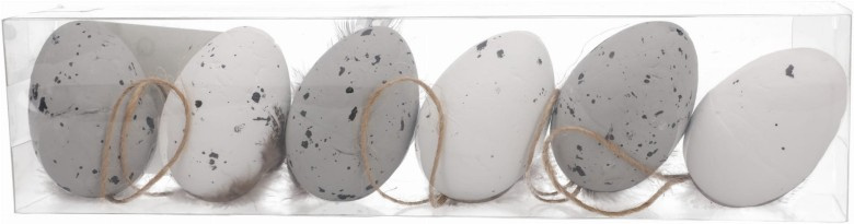 Dodaj wyjątkowego uroku swojej wielkanocnej aranżacji dzięki tym pięknym jajkom dekoracyjnym z piórkiem! Zestaw 6 sztuk to idealny sposób na ozdobienie stołu, koszyków wielkanocnych czy innych wiosennych dekoracji. Jajka z delikatnym piórkiem wprowadzą do Twojego domu subtelną elegancję i radosny, świąteczny nastrój.