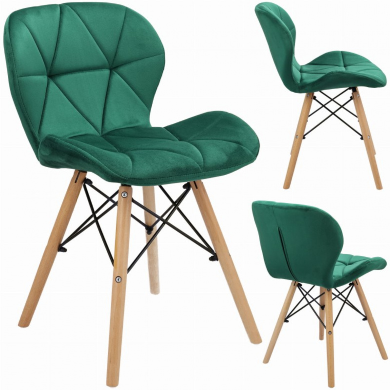 Scaun din colecția VELVET Scaunul are un șezut tapițat cu catifea, cu decupaje interesante pe laterale. Picioarele sunt fabricate din lemn masiv de fag natural, care asigură rezistență și stabilitate în utilizare, în timp ce îmbinările negre întăresc întregul cadru și, în același timp, au un efect decorativ.