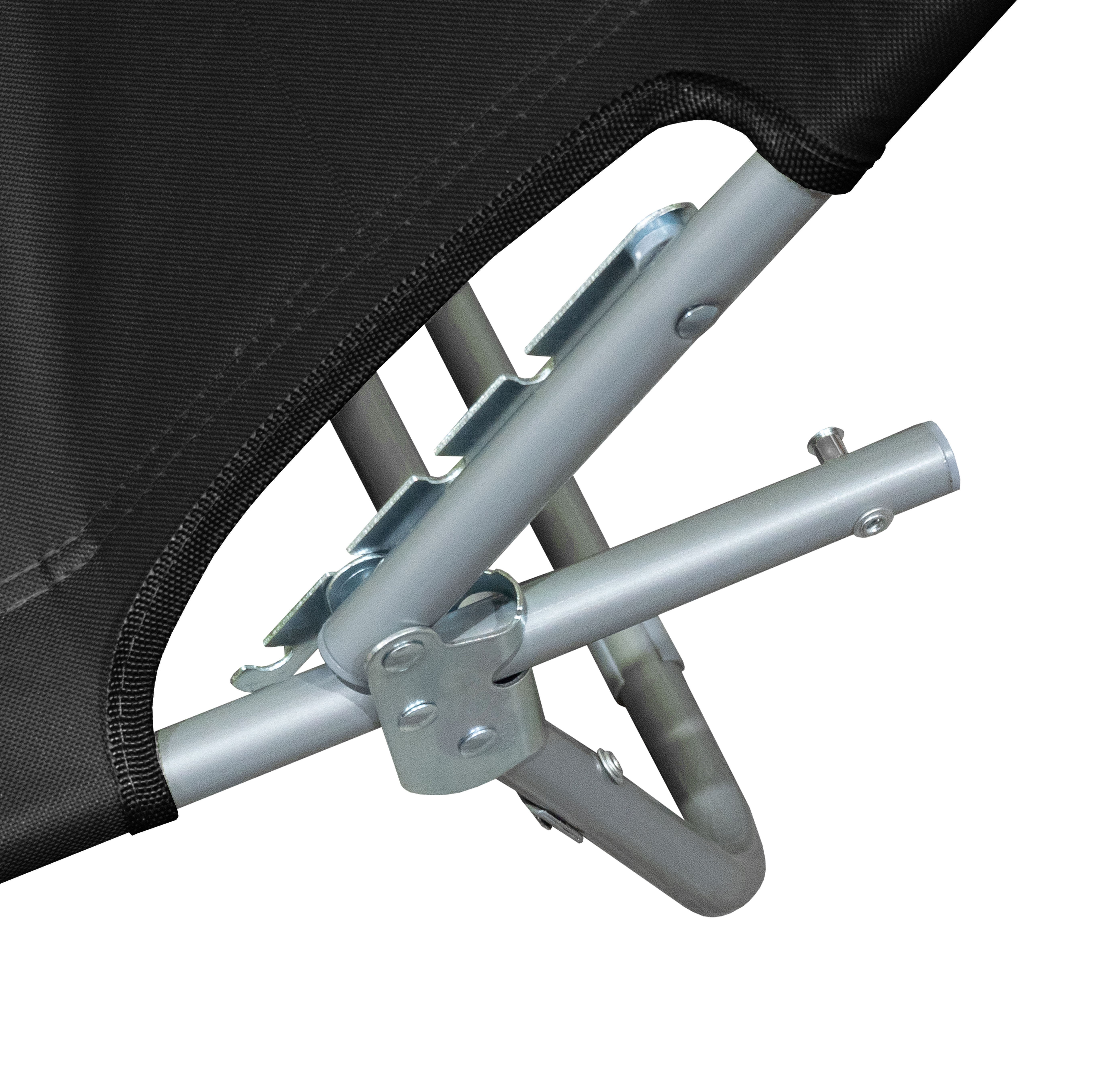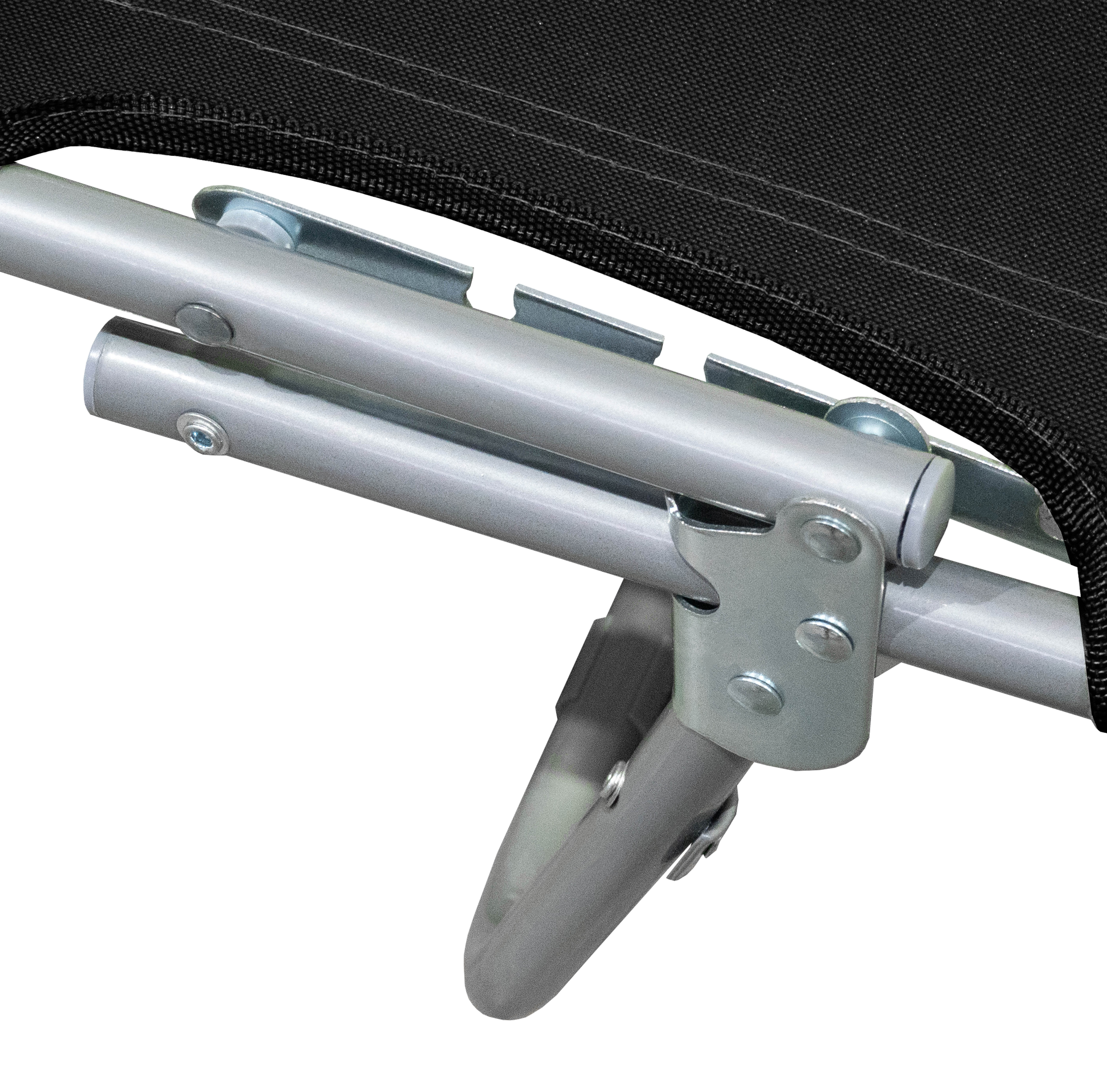 Construcția pliabilă a șezlongului permite o desfășurare și pliere ușoară. Țevile de oțel cu un diametru de 18 mm asigură o rezistență ridicată, durabilitate, stabilitate și o capacitate de încărcare de până la 150 kg.