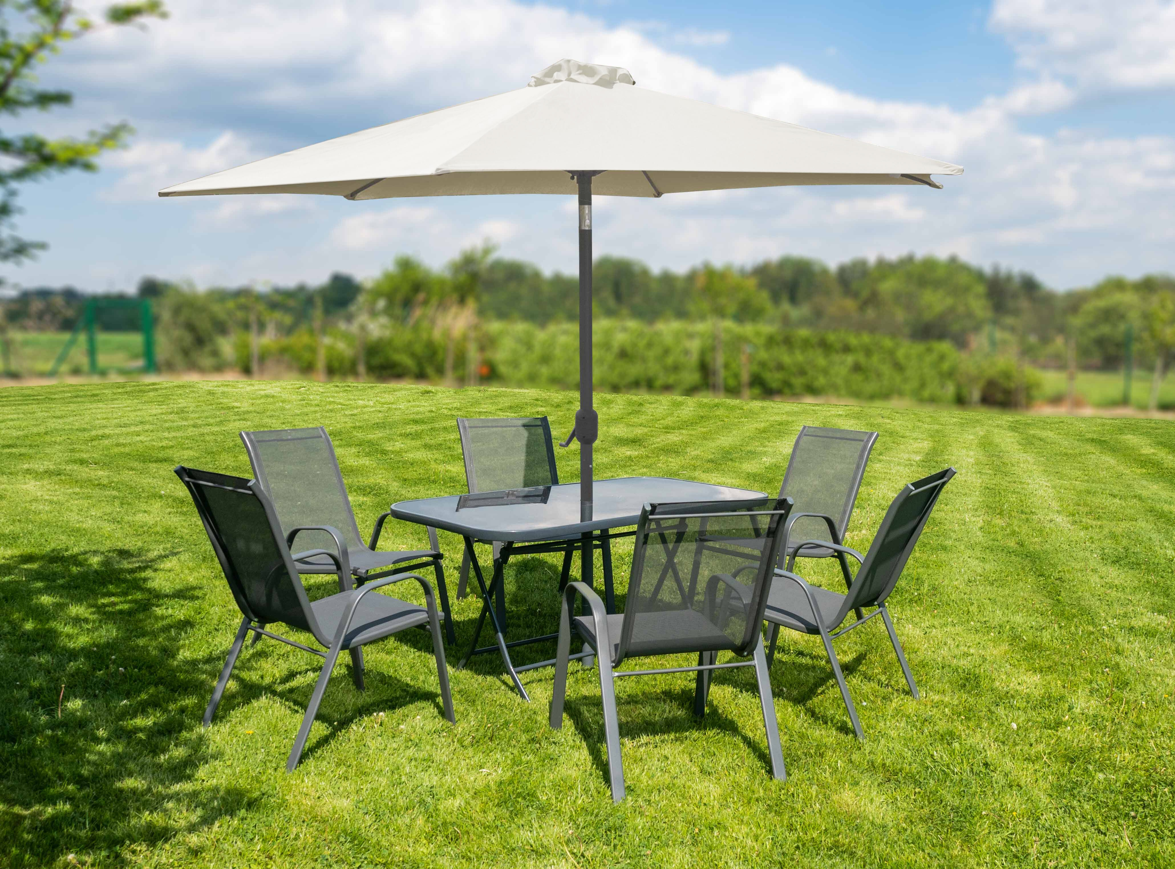 Manevrarea ușoară la deschiderea și închiderea umbrelei de soare este asigurată de un mecanism simplu cu clichet.