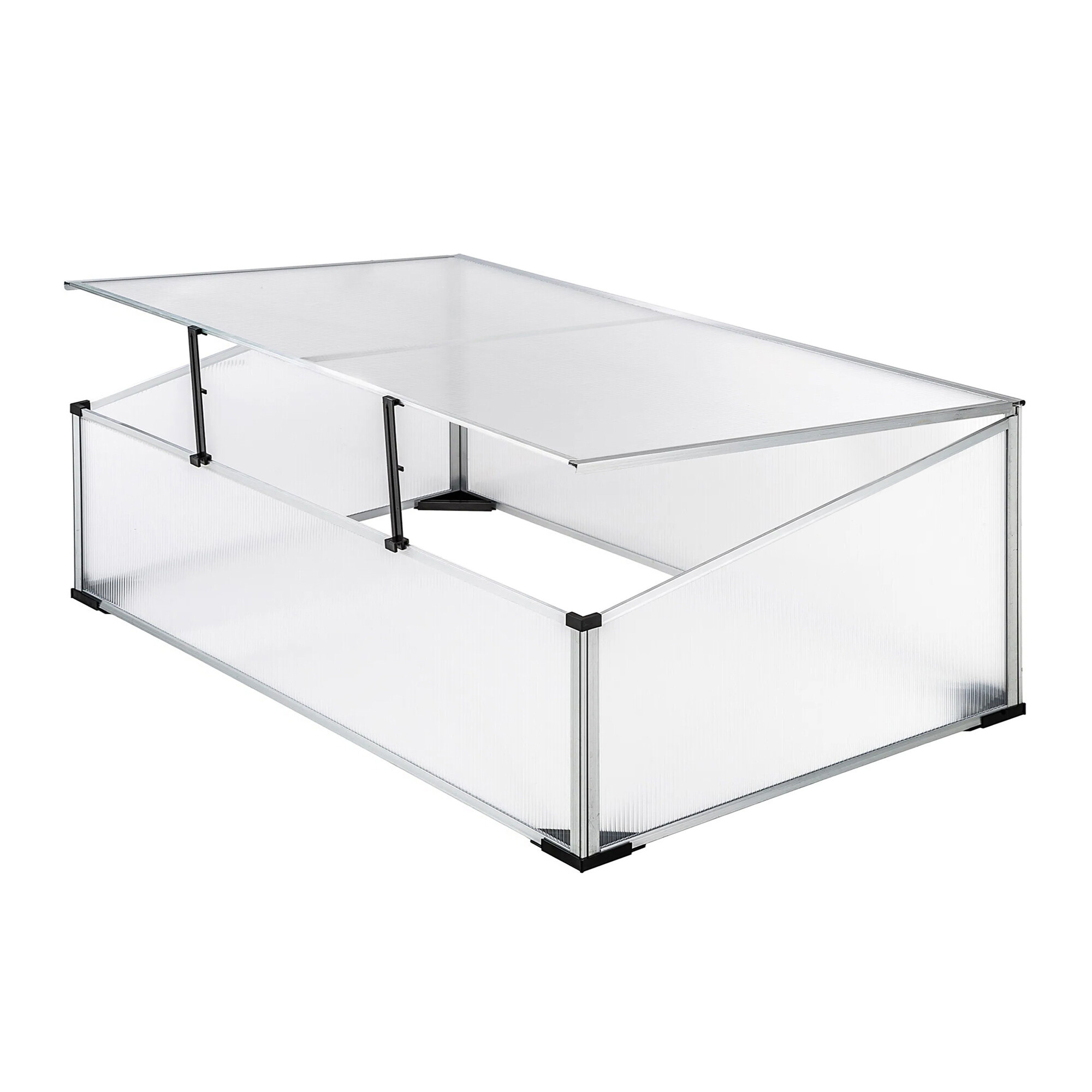 Seră de grădină cu proprietăți excelente de izolare termică, realizată din profile de aluminiu cu umplutură de policarbonat.Răsadnița este echipată cu un capac superior rabatabil pentru acces ușor și ventilație.