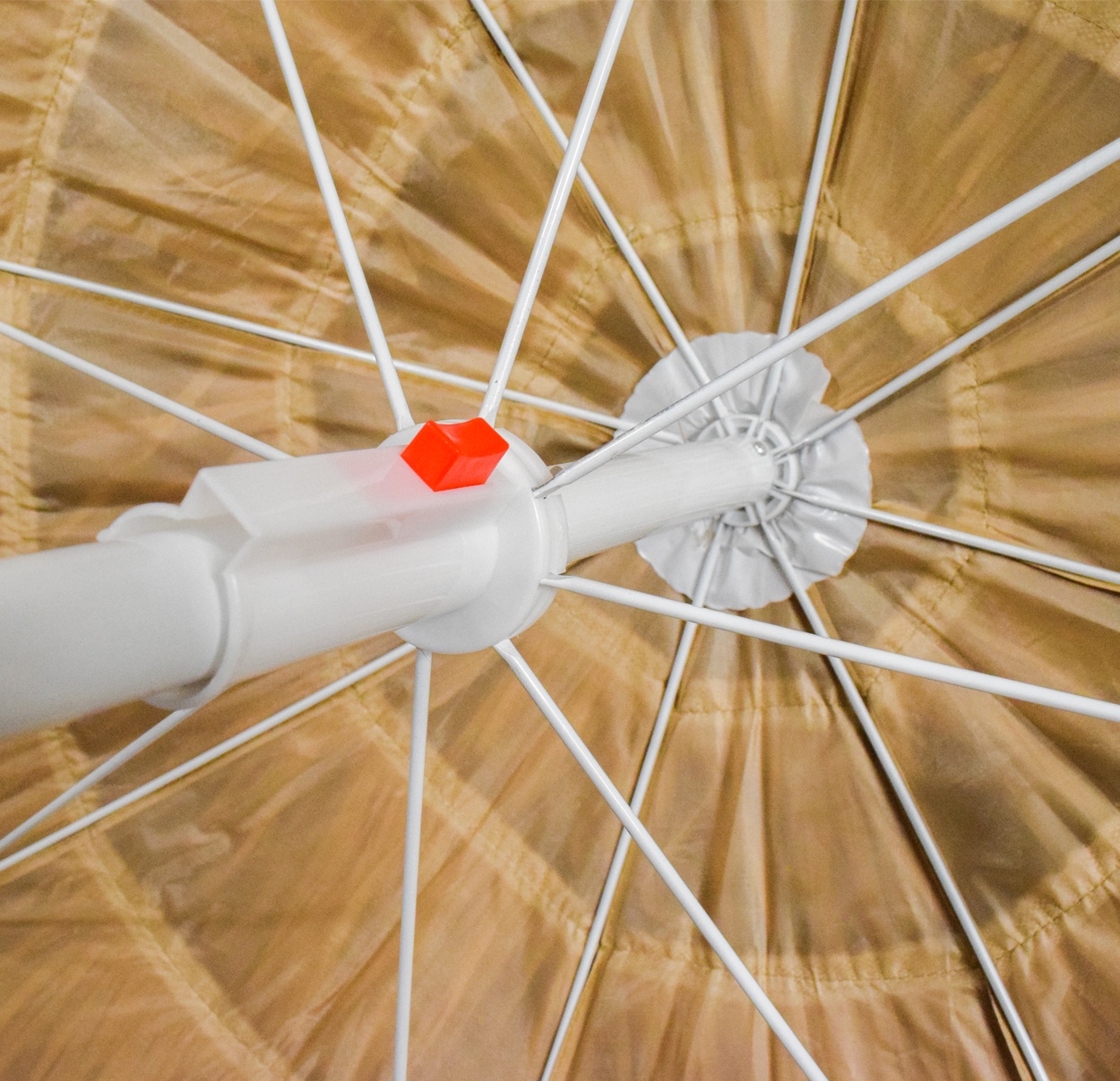Copertina umbrelei este fabricată din mai multe straturi de fâșii de polietilenă.Cu o construcție solidă și un înveliș de calitate, realizat dintr-un material de poliester rezistent.