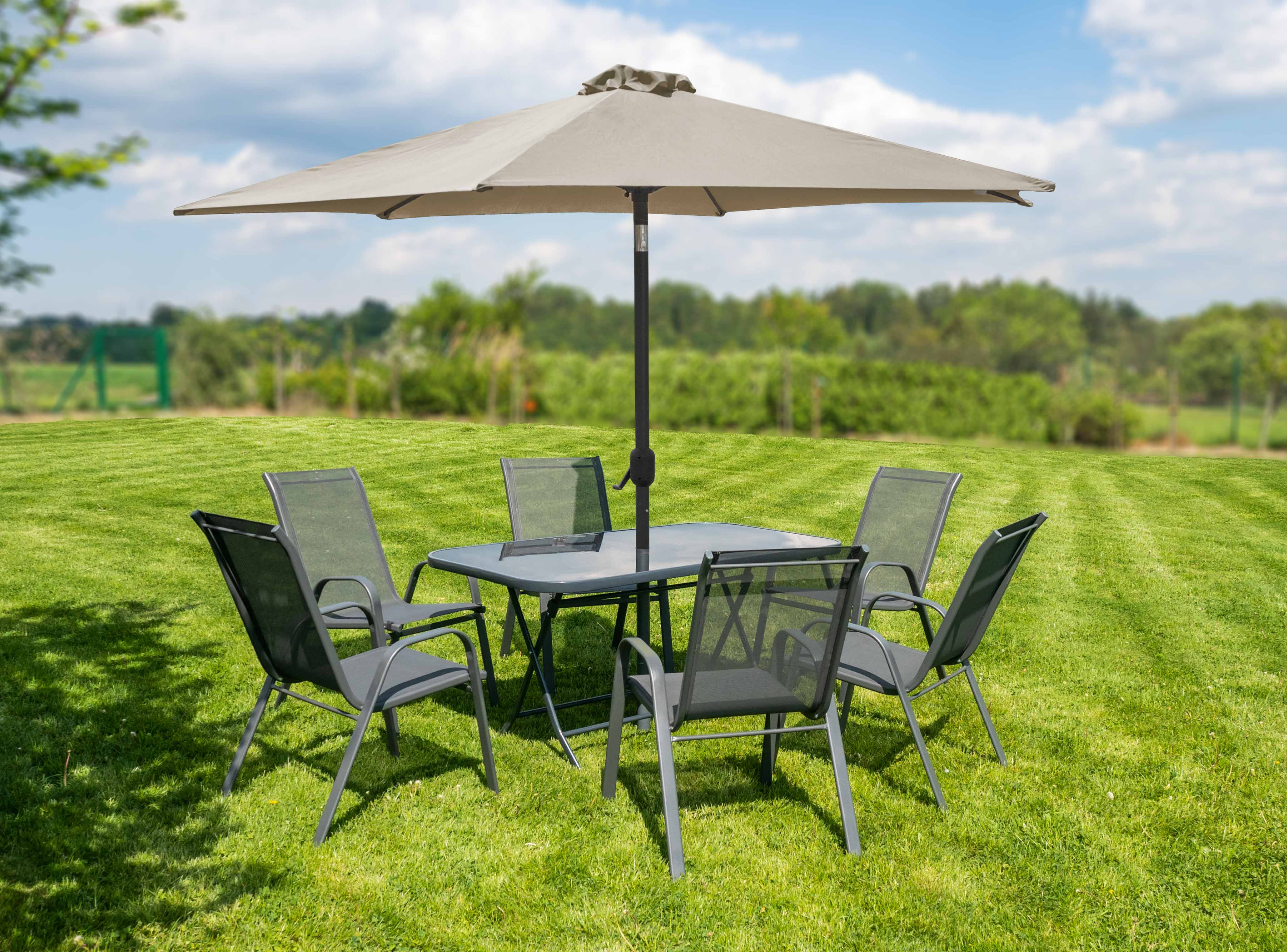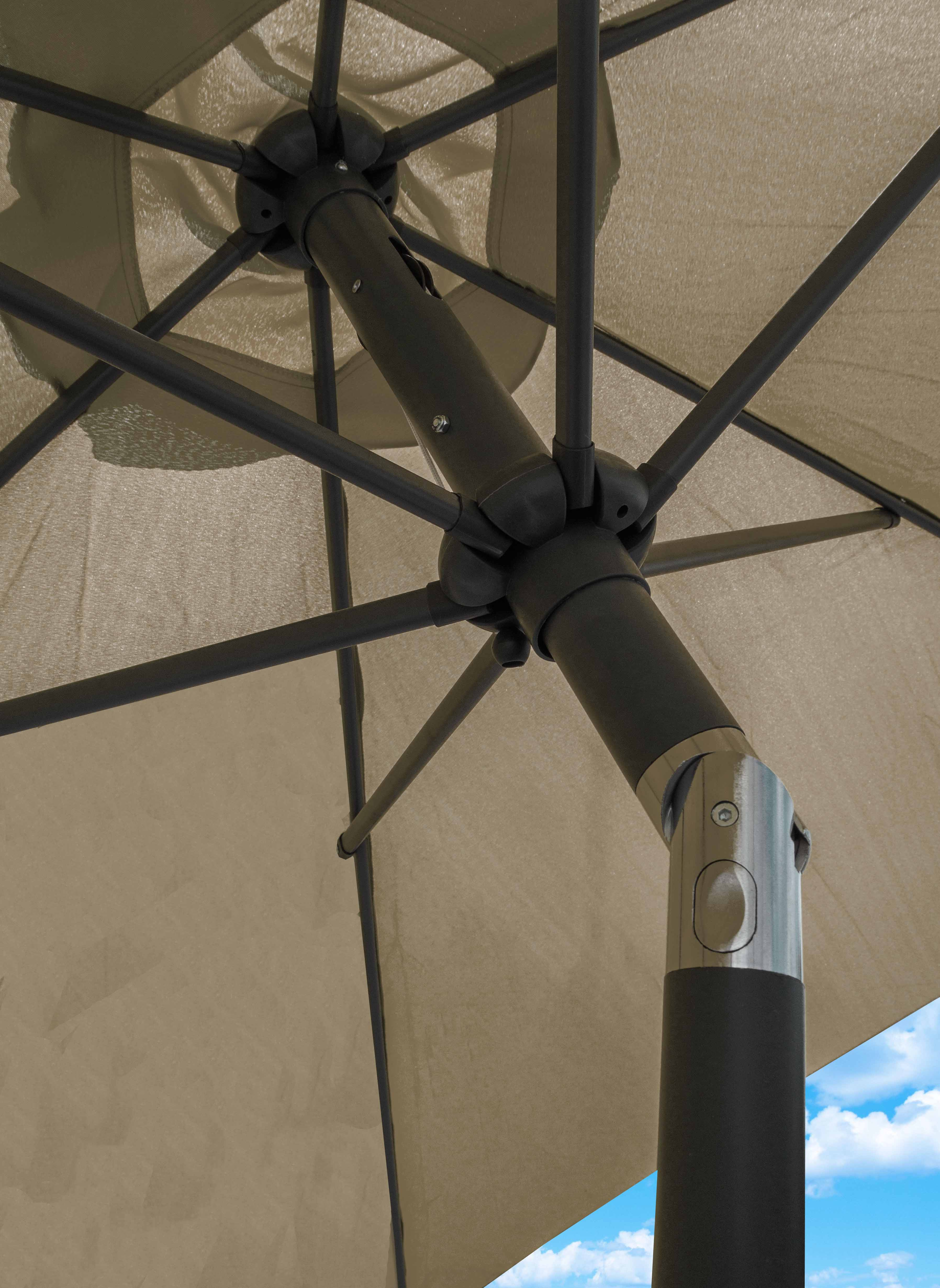 Manevrarea ușoară la deschiderea și închiderea umbrelei de soare este asigurată de un mecanism simplu cu clichet.
