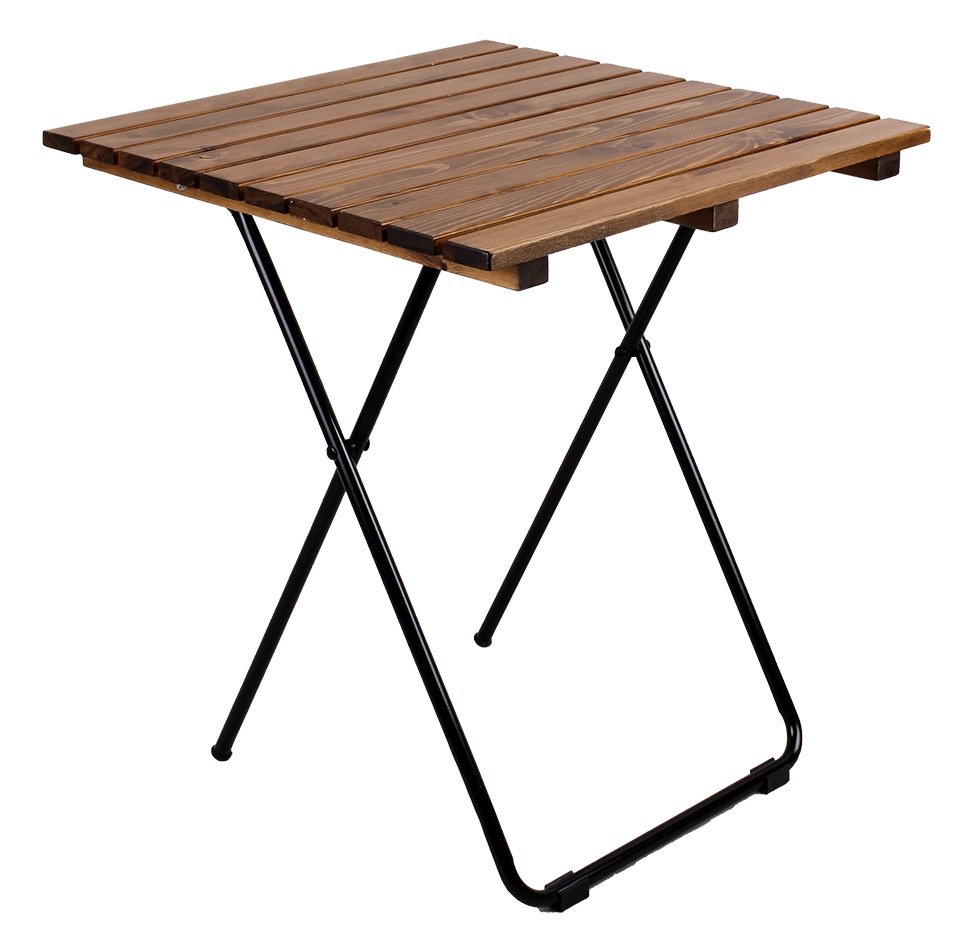 Masa de grădină pliabilă cu cadru metalic solid și blat din lemn, ideală pentru grădini, terase, foișoare, balcoane, dar și pentru interiorul restaurantelor și cafenelelor.