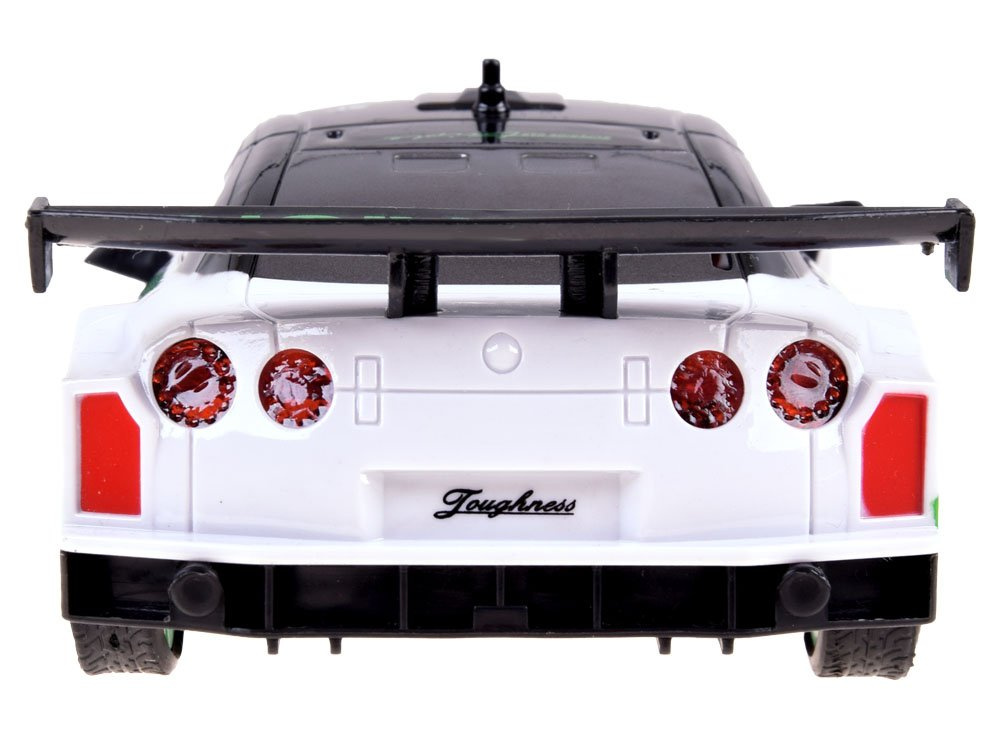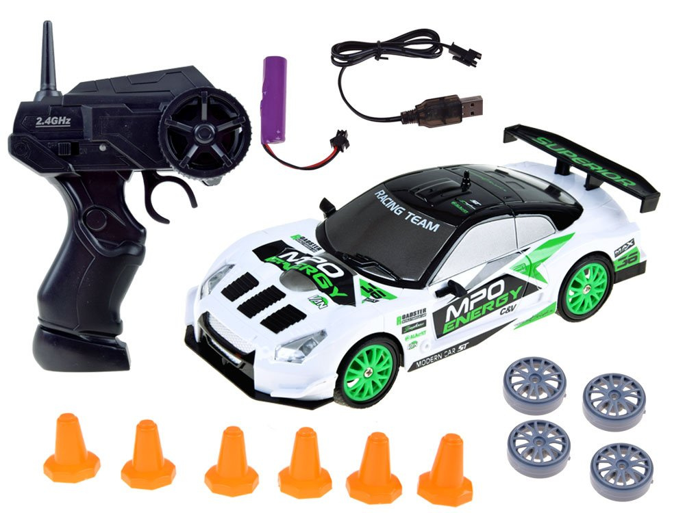 Jucăria este controlată de la distanță cu ajutorul unei telecomenzi de 2,4GHz, care are o antenă încorporată. Cu mașina puteți merge înainte, înapoi, vira la dreapta și la stânga. Setul include o roată de rezervă și un set de conuri pentru a crea o pistă de curse uimitoare pentru curse sau drifturi.