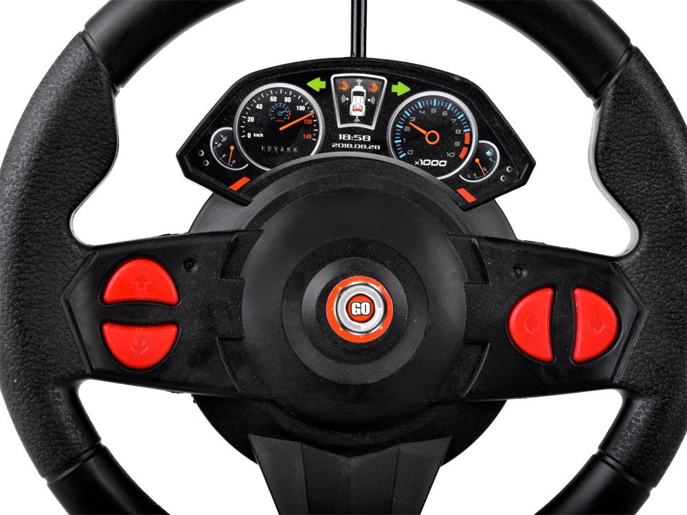 Mașina sport telecomandată cu volan și pedale vă va oferi ore întregi de distracție incredibilă. O mașină cu o siluetă futuristă și elegantă va încânta cu siguranță orice fan al celor patru roți. Ca o adevărată mașină sport, are suspensie joasă, spoiler și iluminare (în față). Șoferul are control complet asupra vehiculului folosind o telecomandă în formă de volan. Telecomanda sub formă de volan are un control foarte intuitiv și se potrivește confortabil în mână. Conducerea vehiculului poate fi controlată și prin pedale atașate la volan, care servesc pentru deplasarea înainte și înapoi. Întregul set este completat de semafoare, care fac distracția și mai interesantă.