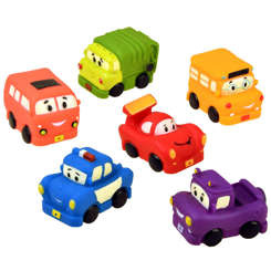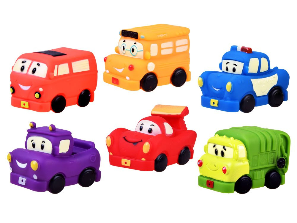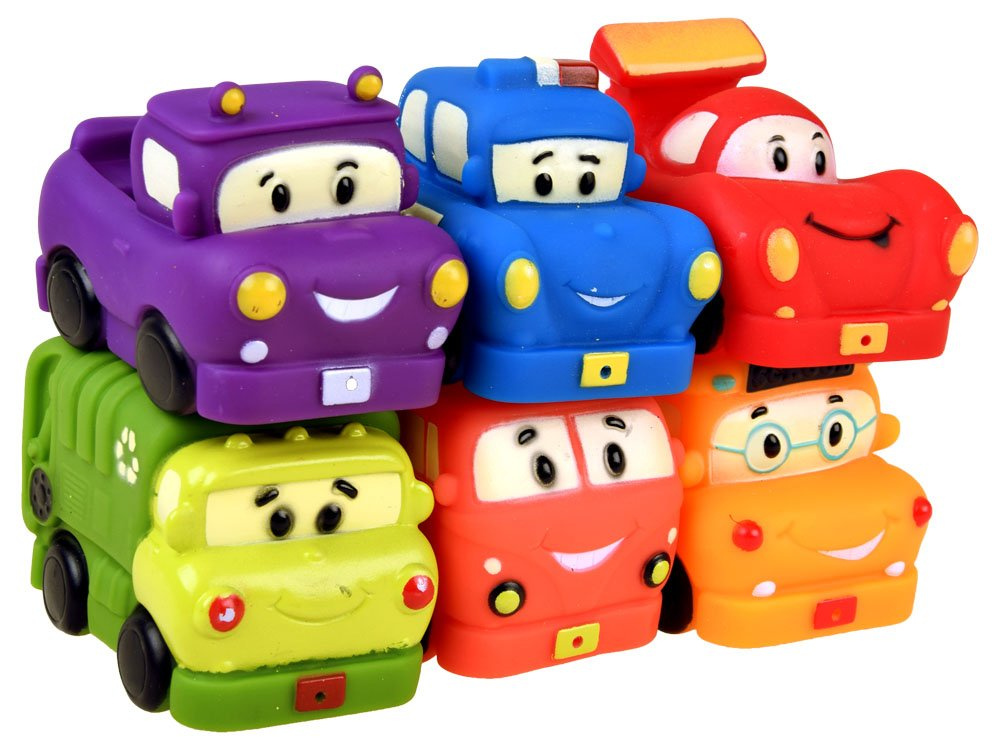 Mașinuțele din cauciuc colorate sunt perfecte pentru orice joc acvatic. Fie că este vorba de o baie de seară sau de stropit în piscină, setul de mașinuțe de cauciuc poate face față tuturor aventurilor acvatice. Mașinuțele sunt fabricate exclusiv din cauciuc și au o deschidere în caroserie, astfel încât copilul poate stropi cu apă.Cu mașinuțele colorate, copilul va învăța să recunoască culorile.