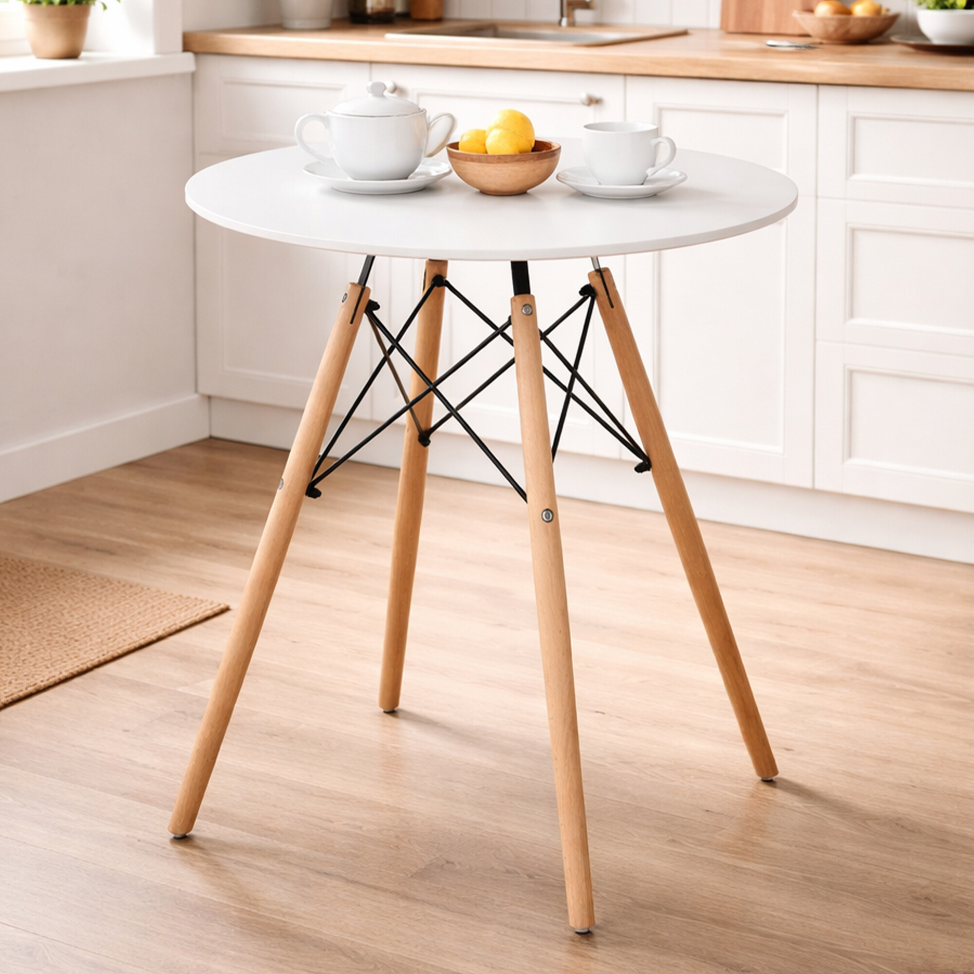 Masa de dining în stil scandinav se potrivește ușor cu interiorul bucătăriei sau al sălii de mese.