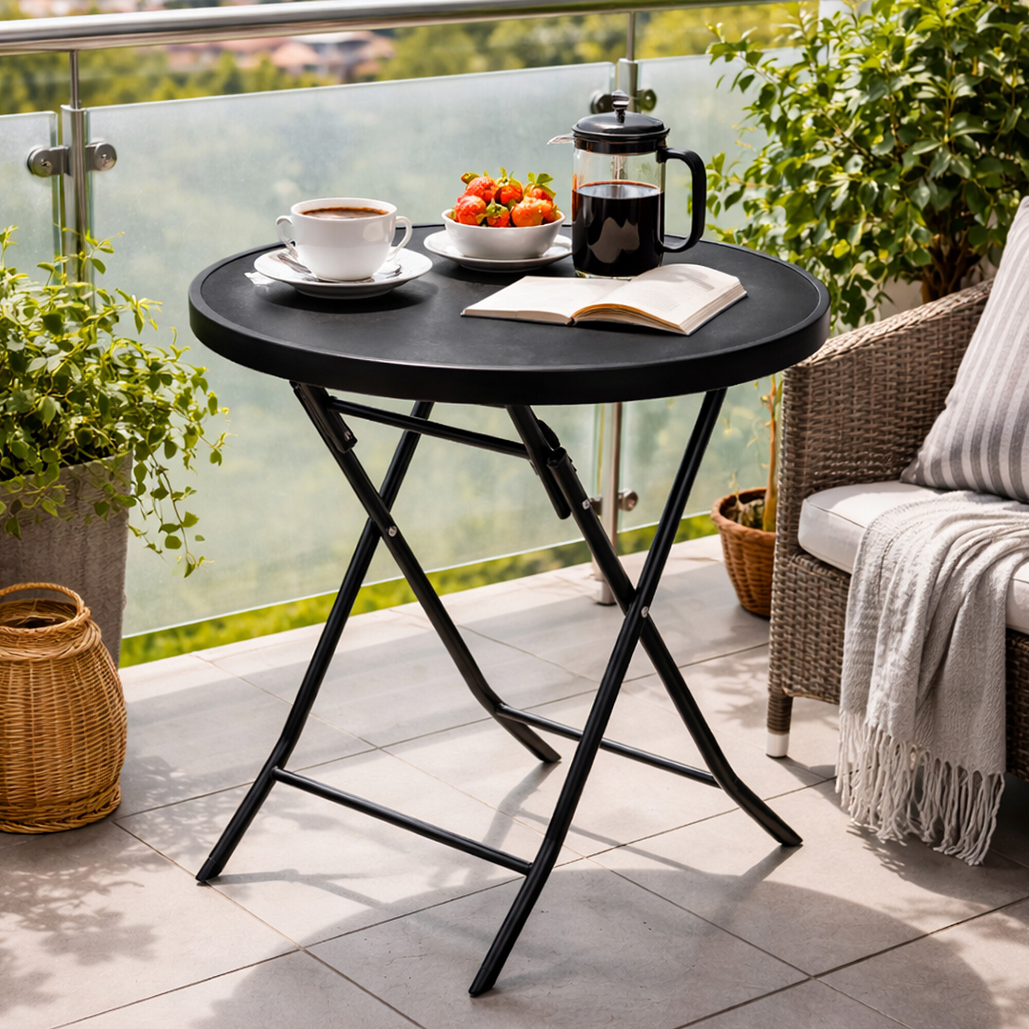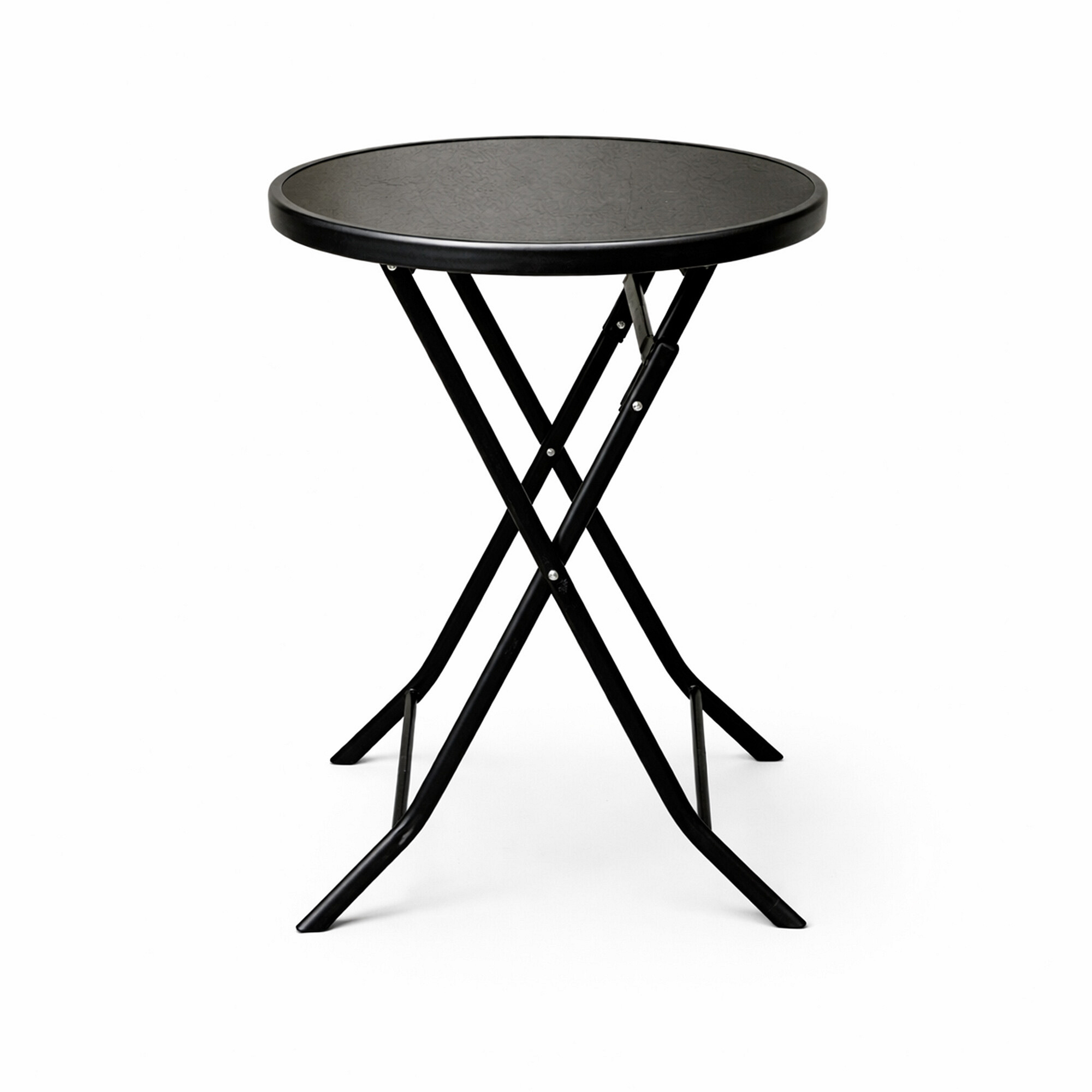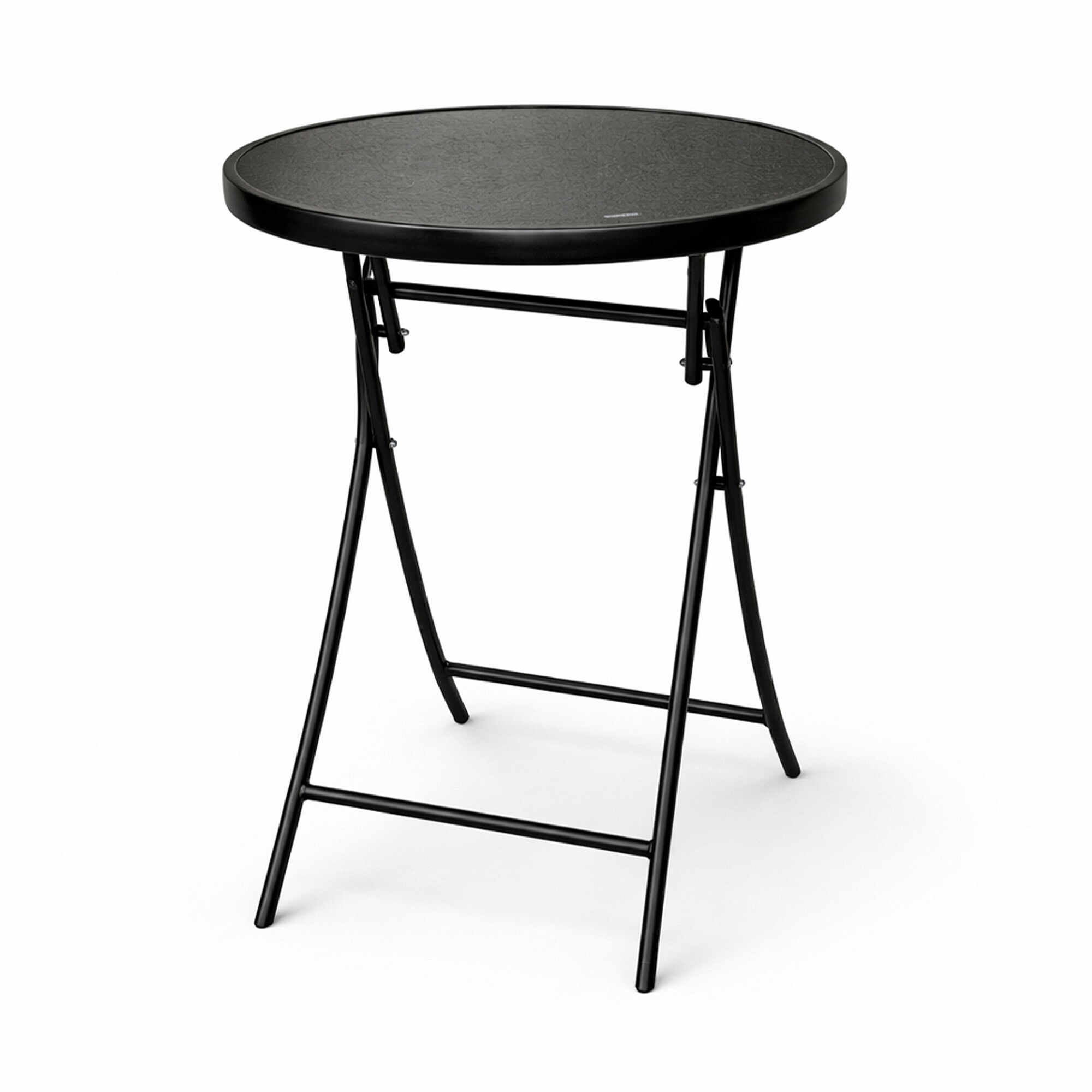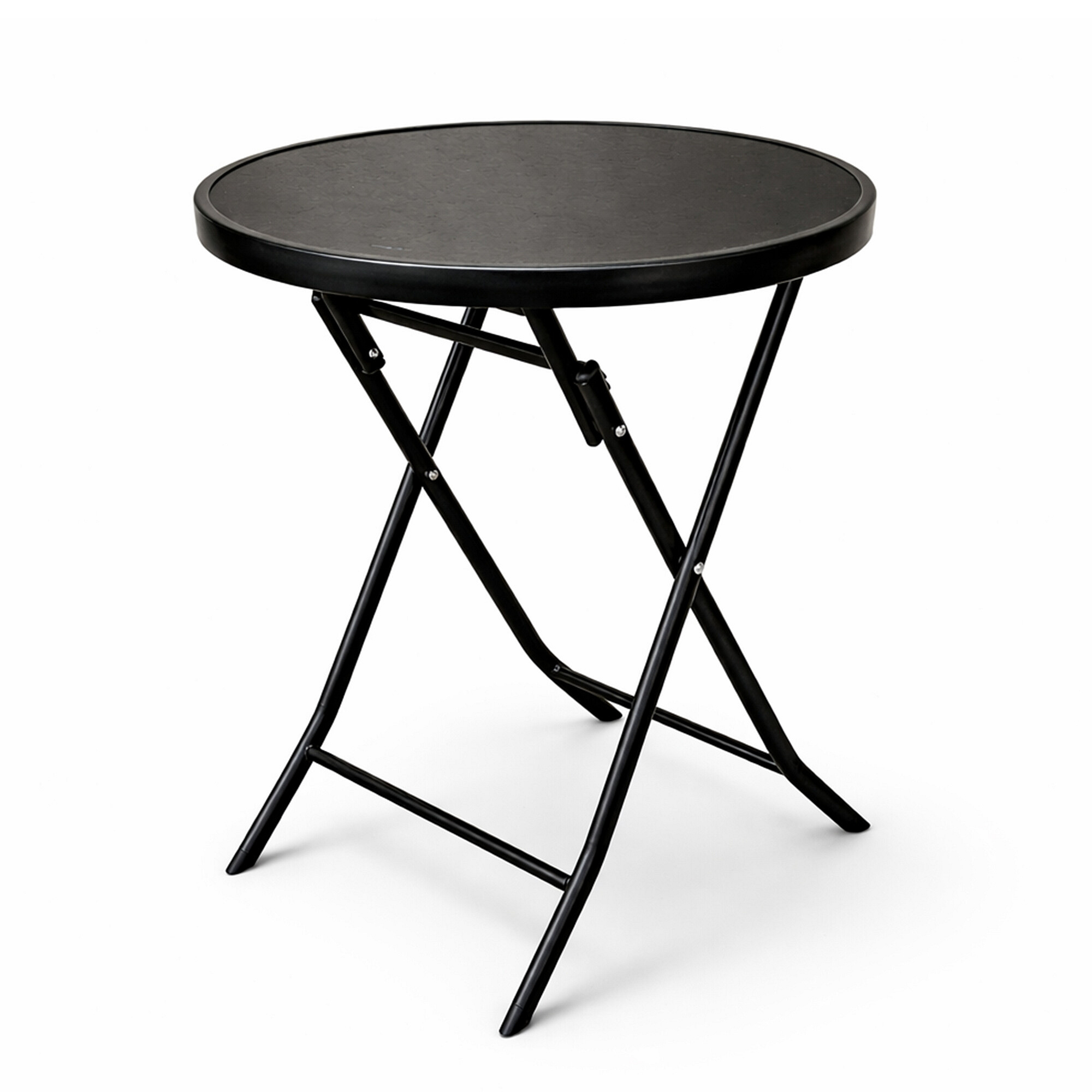 Masa de grădină rotundă cu cadru metalic solid și blat de sticlă, potrivită pentru grădini, terase, cafenele, foișoare, balcoane.