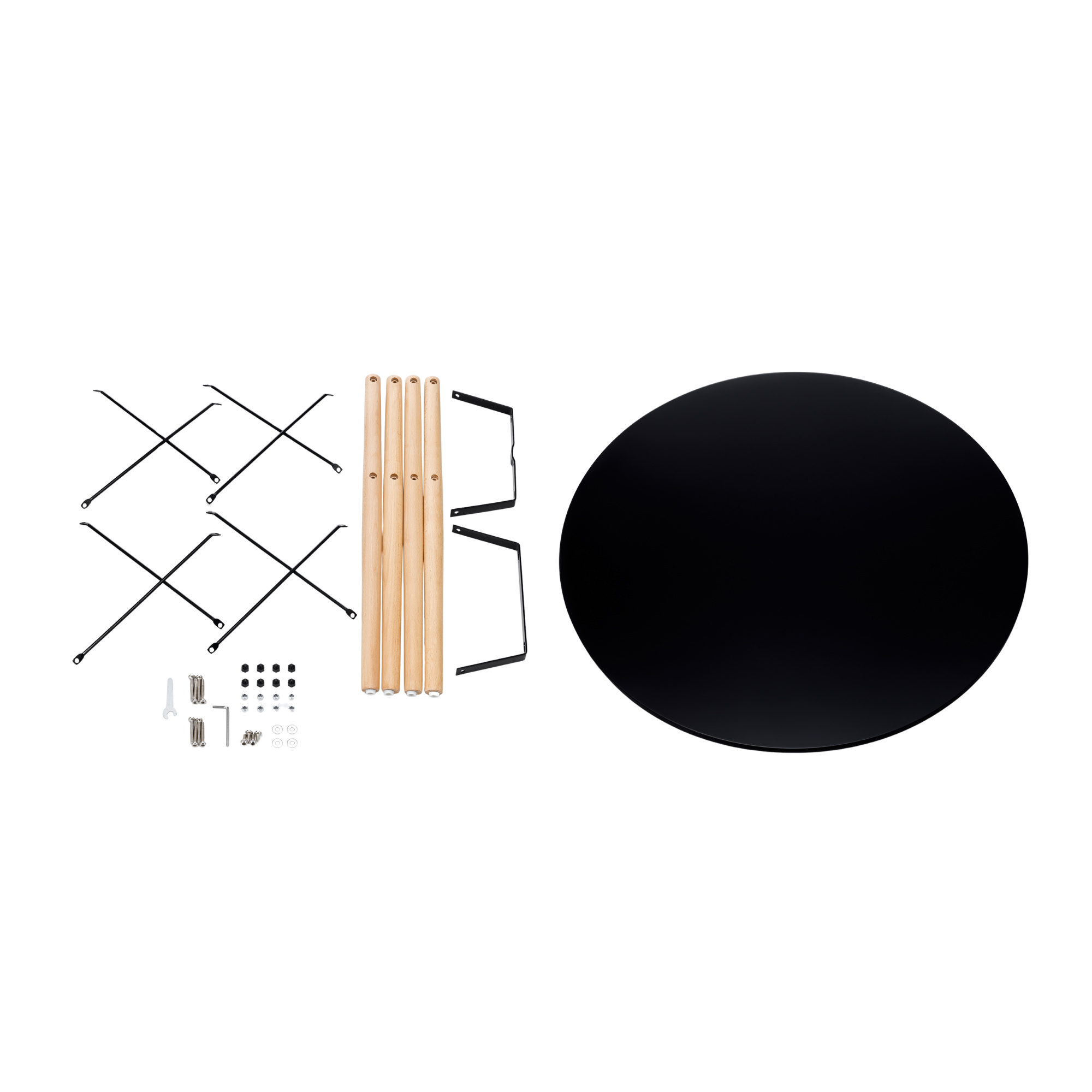 Picioarele mesei sunt fabricate din lemn de fag.Consolidat cu o structură din oțel, care este tratată cu vopsea neagră pulbere.