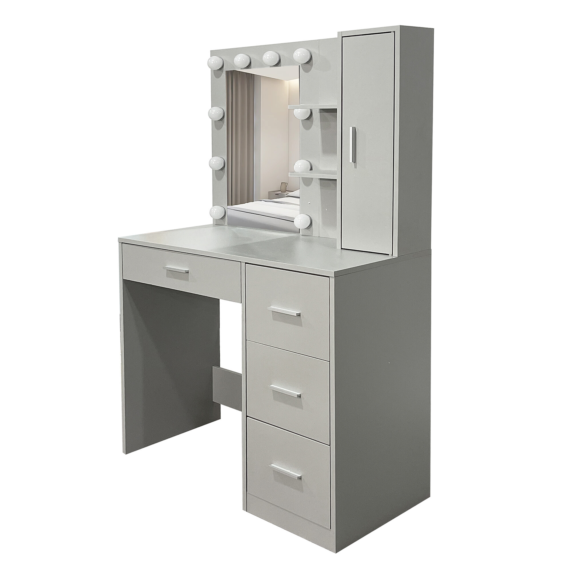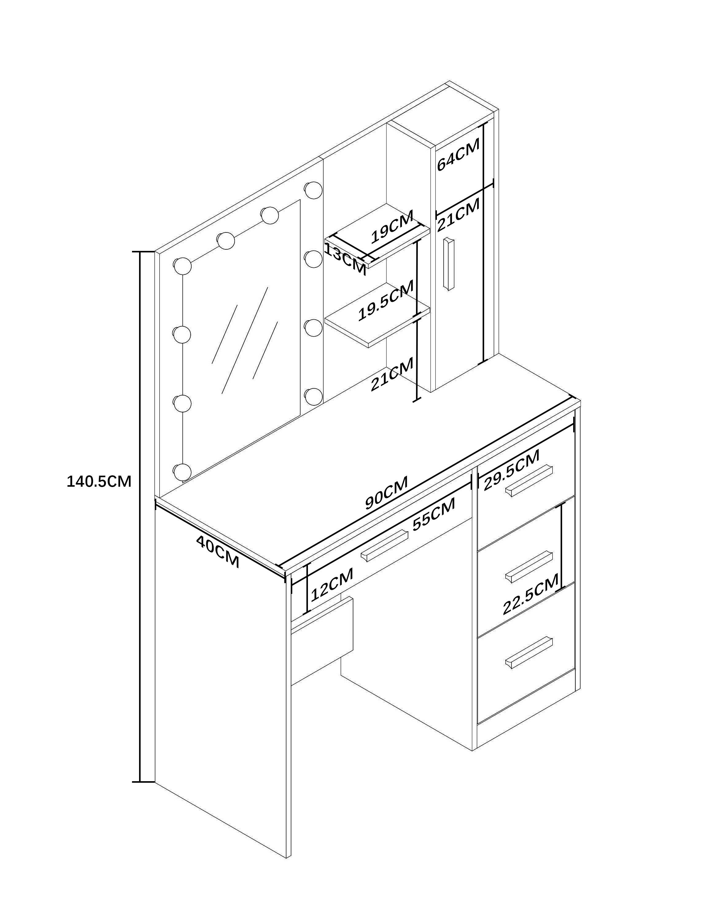 Blatul de lucru larg oferă suficient spațiu pentru machiajul zilnic, aranjarea părului și îngrijirea pielii, având în același timp un aspect elegant și curat. PAL de calitate asigură rezistența, stabilitatea și durabilitatea mesei, care își va păstra frumusețea chiar și după ani de utilizare.