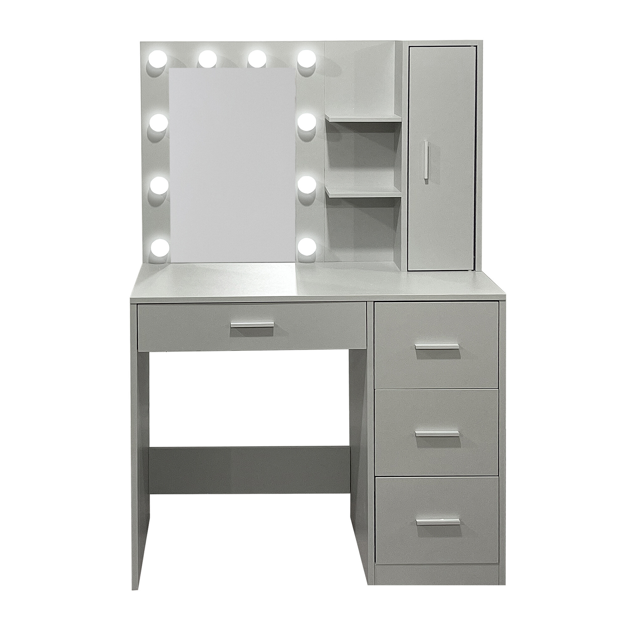 Dominanta mesei este o oglindă mare cu 10 becuri LED. Datorită acestui fapt, veți asigura întotdeauna iluminarea ideală pentru machiaj, aranjarea părului sau îngrijirea pielii de seară.