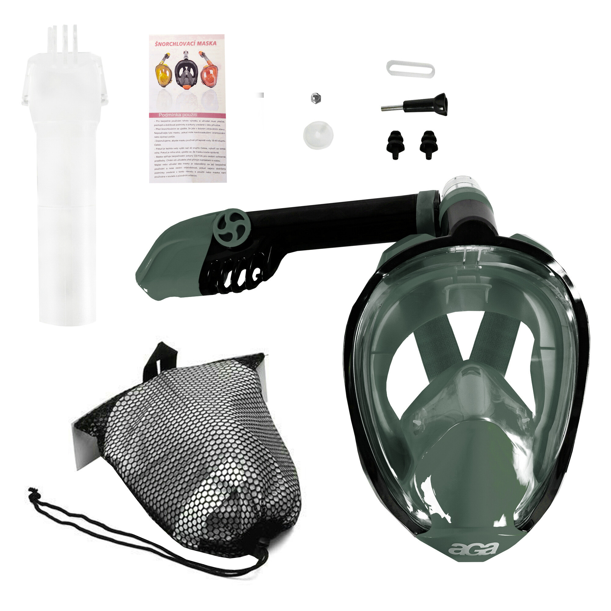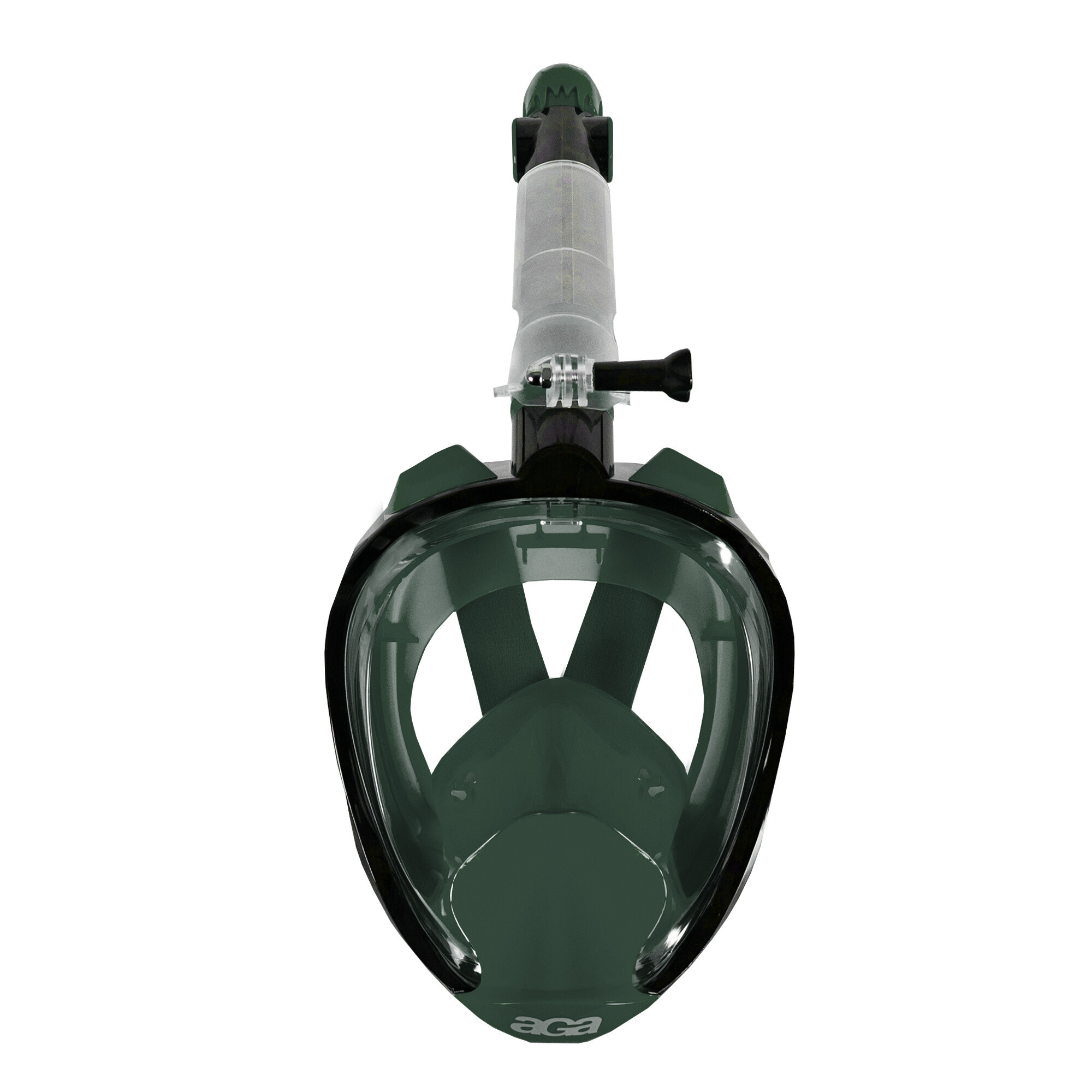 Masca de scufundare Aga este fabricată din policarbonat și oferă o protecție enormă împotriva pătrunderii apei, precum și un confort sporit la purtare. Oferă un unghi de vizualizare de 180° cu un sistem de respirație circulator. Aerul proaspăt îl inhalați atât pe nas, cât și pe gură, apoi acesta iese prin orificiile unidirecționale ale măștii.