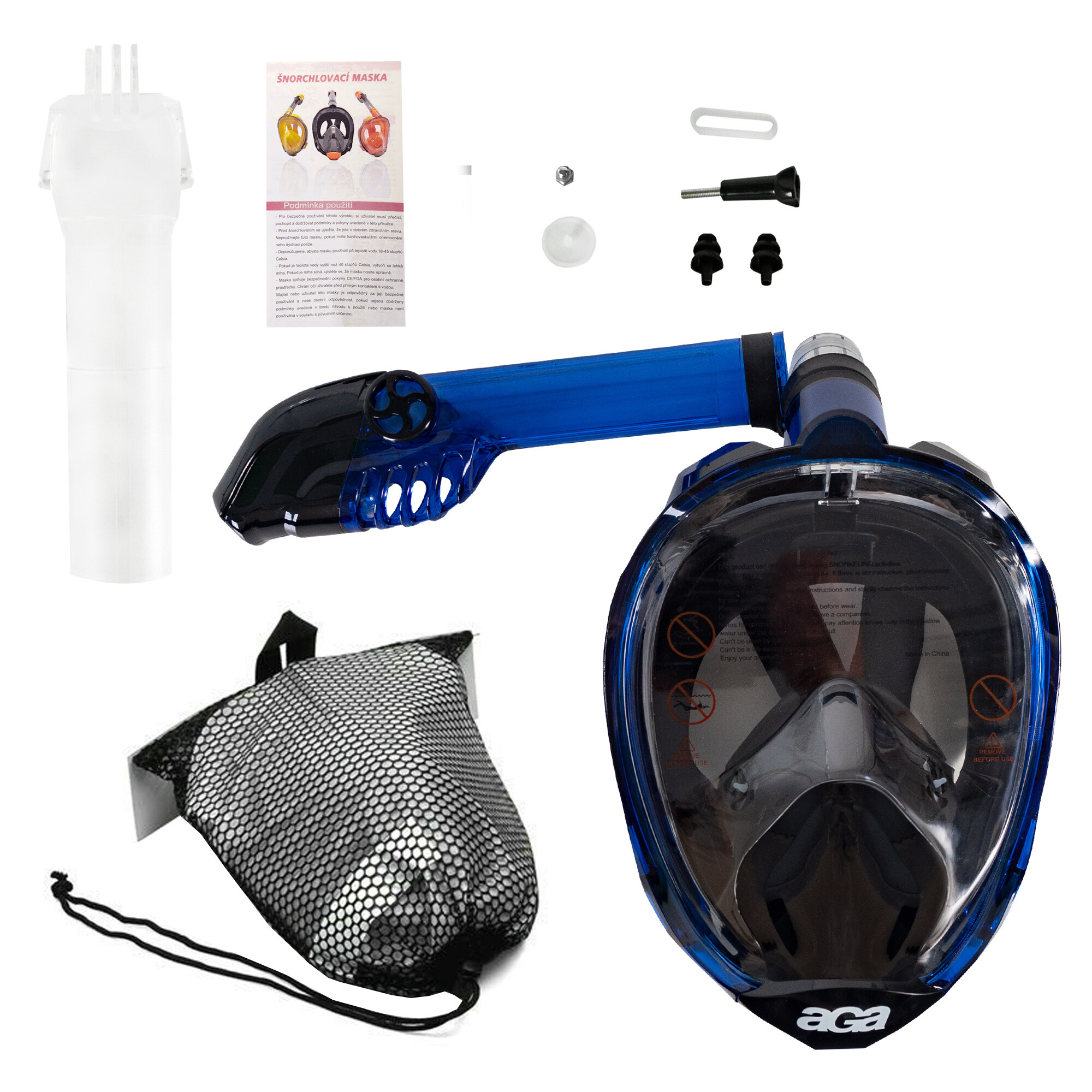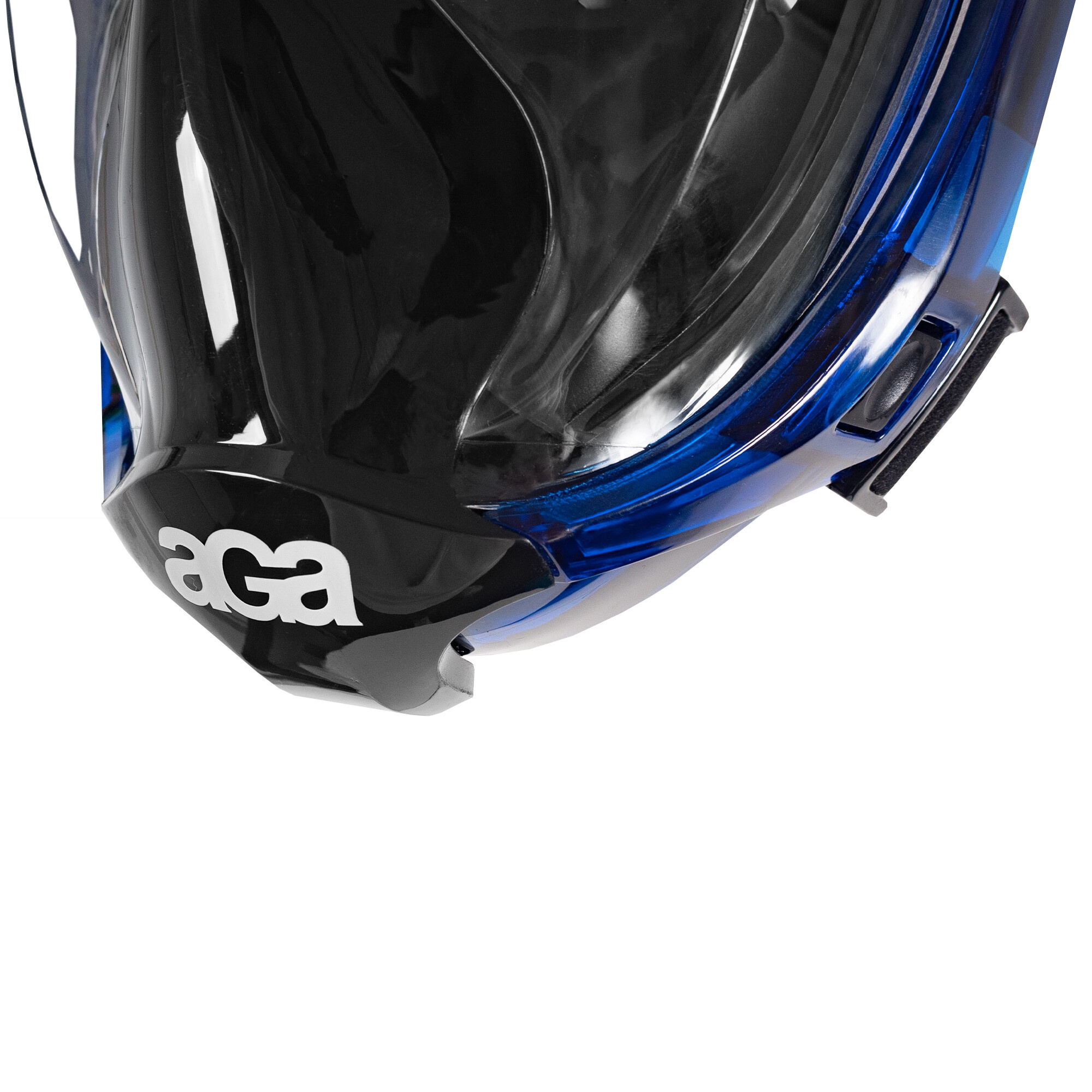 Masca de scufundare Aga este fabricată din policarbonat și oferă o protecție enormă împotriva pătrunderii apei, precum și un confort sporit la purtare. Oferă un unghi de vizualizare de 180° cu un sistem de respirație circulator. Aerul proaspăt îl inhalați atât pe nas, cât și pe gură, apoi acesta iese prin orificiile unidirecționale ale măștii.