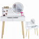 Măsuță de toaletă cosmetică cu oglindă LED - SCANDI albă