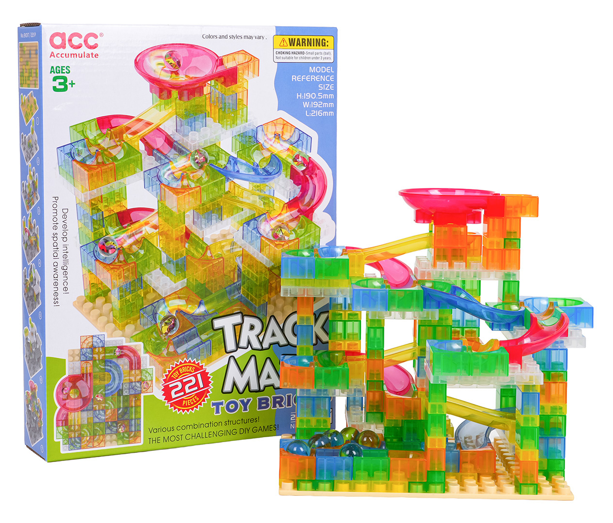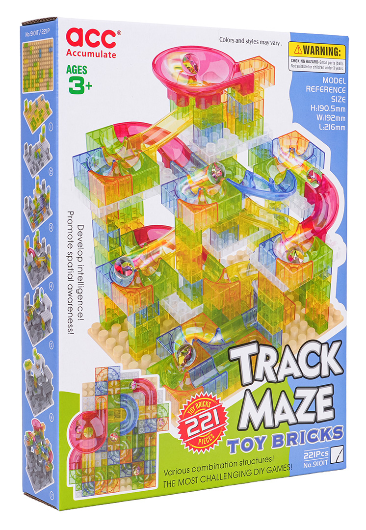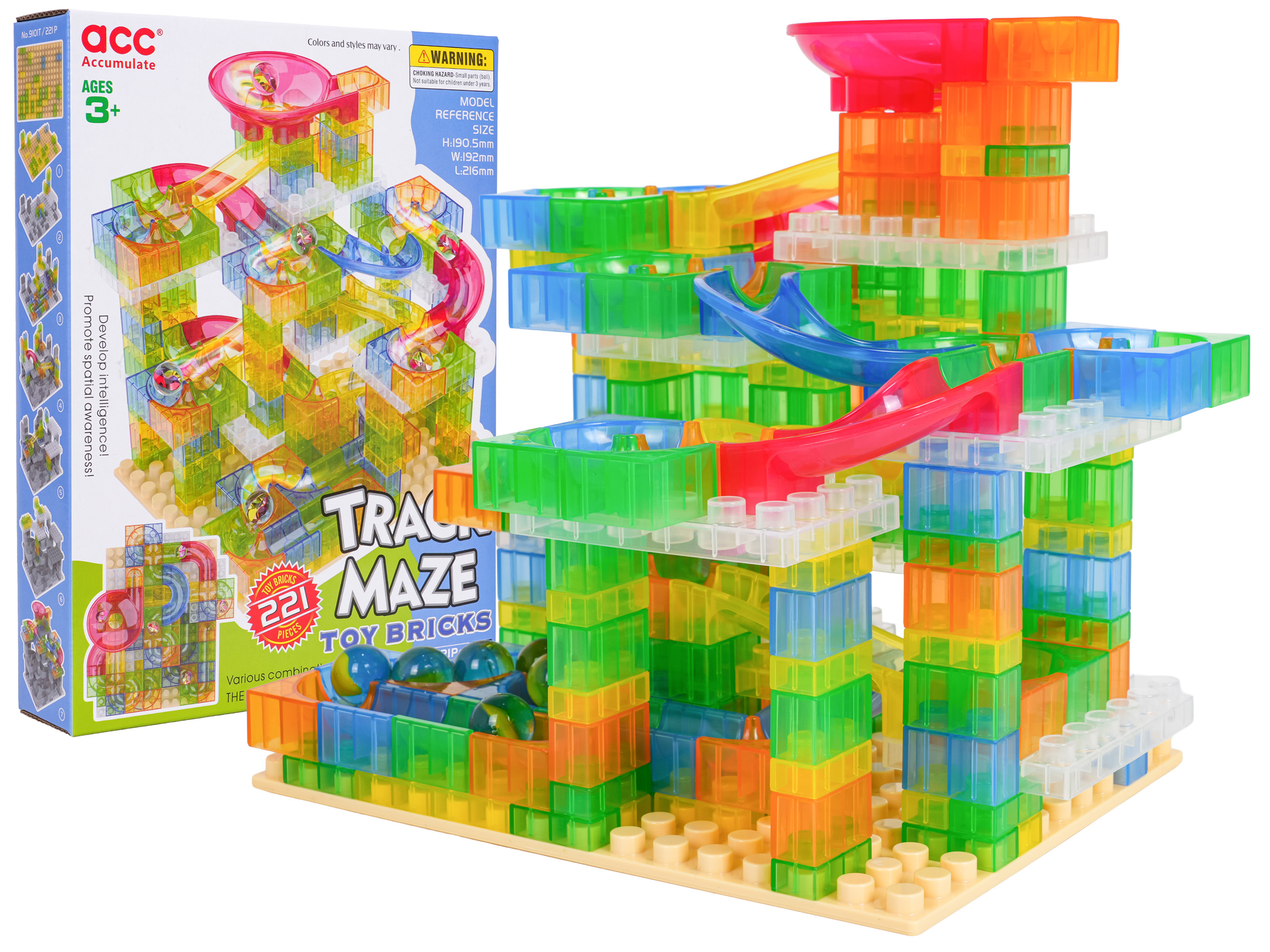 | Kolorowy, wytrzymały, tor, labirynt do samodzielnego montażu ze szklanymi kuleczkami dla dzieci od trzeciego roku życia. Zabawa polega na samodzielnym zbudowaniu konstrukcji toru, a potem puszczaniu piłeczek tunelami. Z 221 elementami możemy utworzyć różne konstrukcje. Puszczanie w ruch kuleczek i obserwowania jak pokonuje kręte tunele, daje mnóstwo radości, uspokaja i wycisza. Zabawka pozytywnie wpływa na rozwój kreatywności, wyobraźni i zdolności manualnych. Funkcje zestawu: - przeznaczony dla dzieci od trzeciego roku życia, - znakomicie wykonany w żywych kolorach, - stabilna konstrukcja - rozwija koordynację ręka-oko, - uczy spostrzegawczości, - uczy kreatywnej zabawy. |