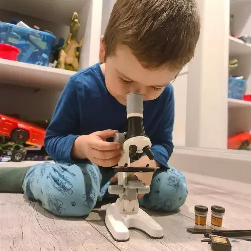 Cum arată un insect, o pană, o imagine dintr-un ziar, o frunză, degetul tău, un fir de păr sau cristalele de sare atunci când le mărești? Cu un microscop, obiectele de zi cu zi își dezvăluie micro-secretele și dezvăluie imagini uimitoare, anterior inaccesibile ochiului. Setul senzațional cu accesorii vă va duce în minunata lume a microbiologiei, științei și naturii.SPECIFICAȚII: