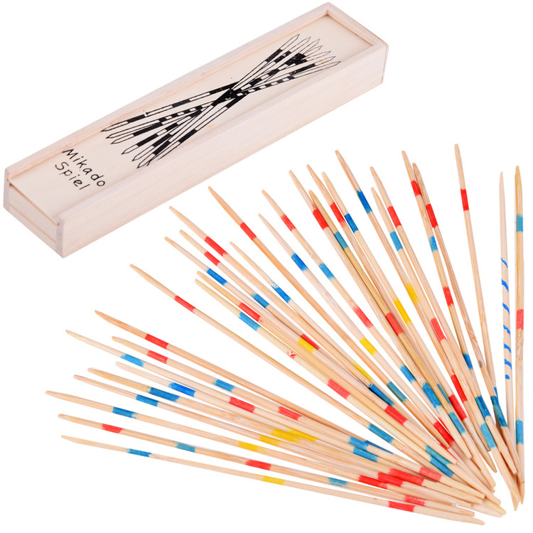 Mikado este un joc arcade, care se joacă de cel puțin două persoane.Barele individuale diferă prin numărul și culoarea dungilor pictate, care indică valoarea sacului. Începeți jocul prin împrăștierea pe masă a unui mănunchi de bețișoare pe care le țineți vertical în mâna strânsă. Acest lucru va crea o grămadă din care jucătorii trebuie să ia pe rând câte un cub, astfel încât să nu miște celelalte. Dacă în timpul jocului se mișcă chiar și un singur băț, tura este pierdută și sarcina este preluată de următorul jucător. Câștigător devine jucătorul care adună acele bețe a căror sumă este cea mai mare. Jocul dezvoltă răbdarea, concentrarea și capacitatea de a-ți controla propriul corp.