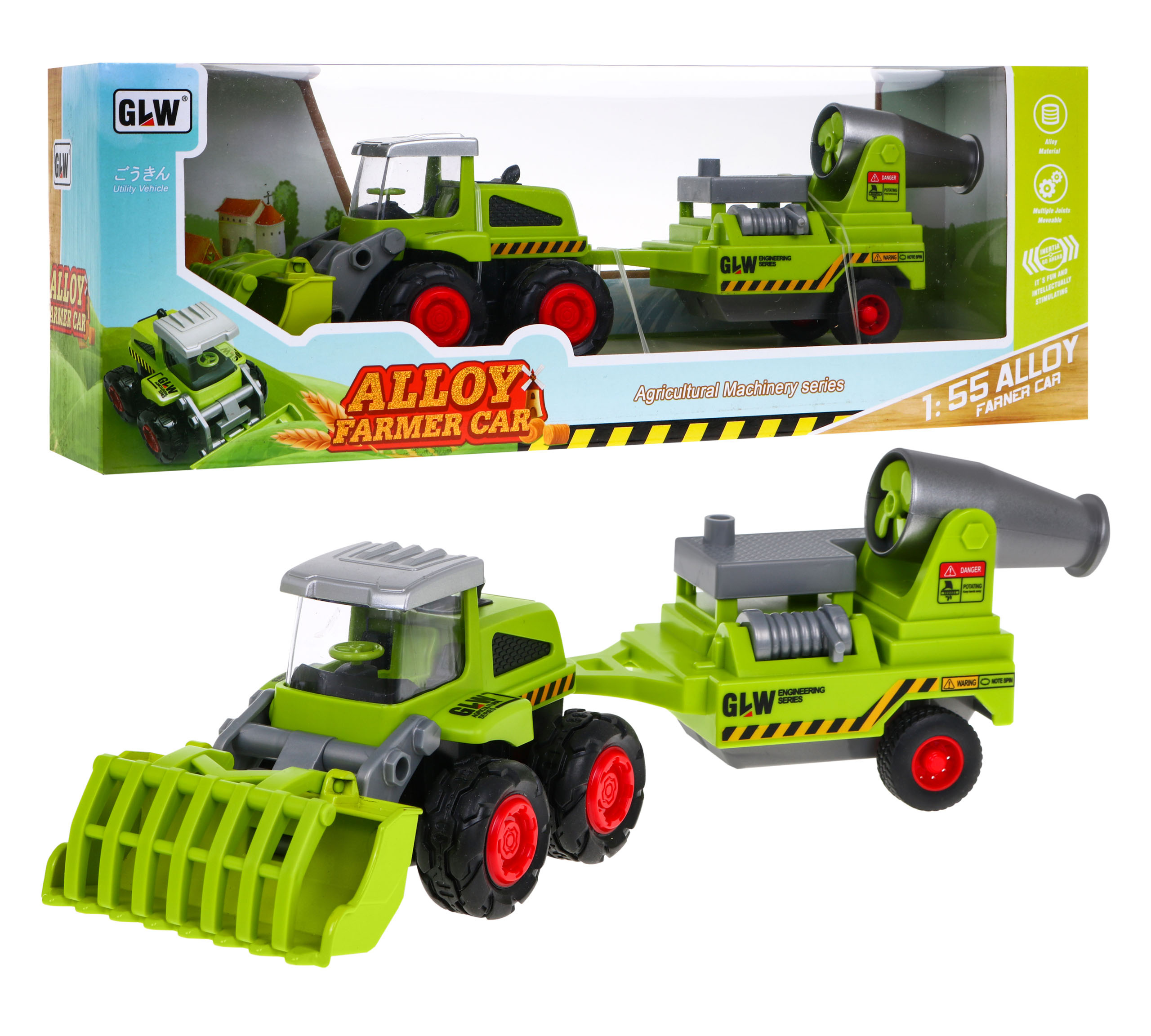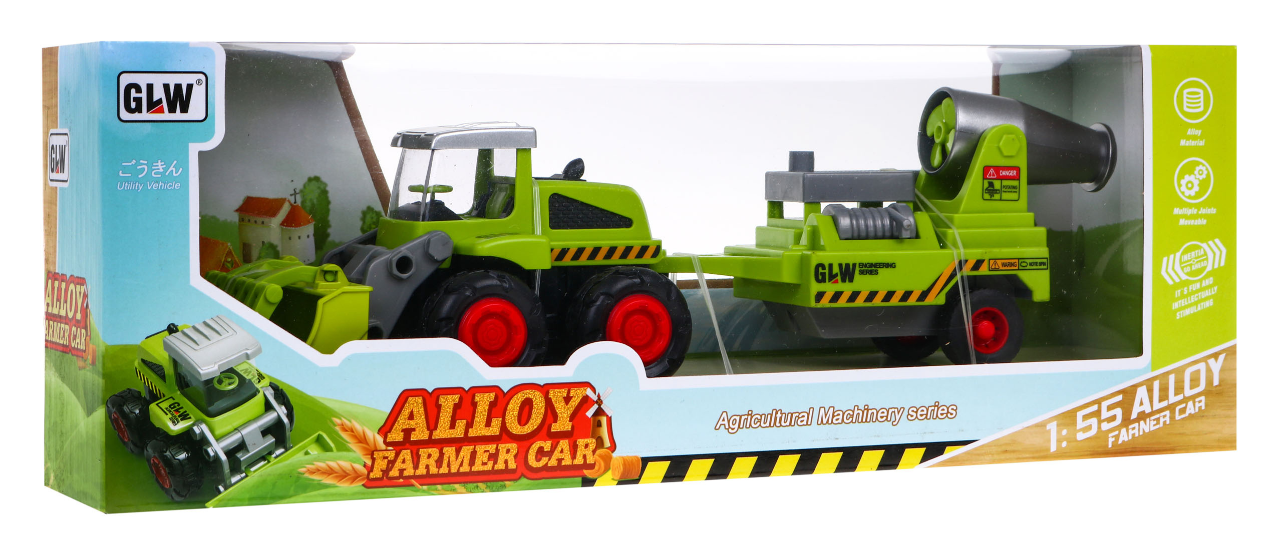 Încărcător agricol pentru copii 1:55 Tractor cu tractor + remorcă cu pulverizator pentru livadă
