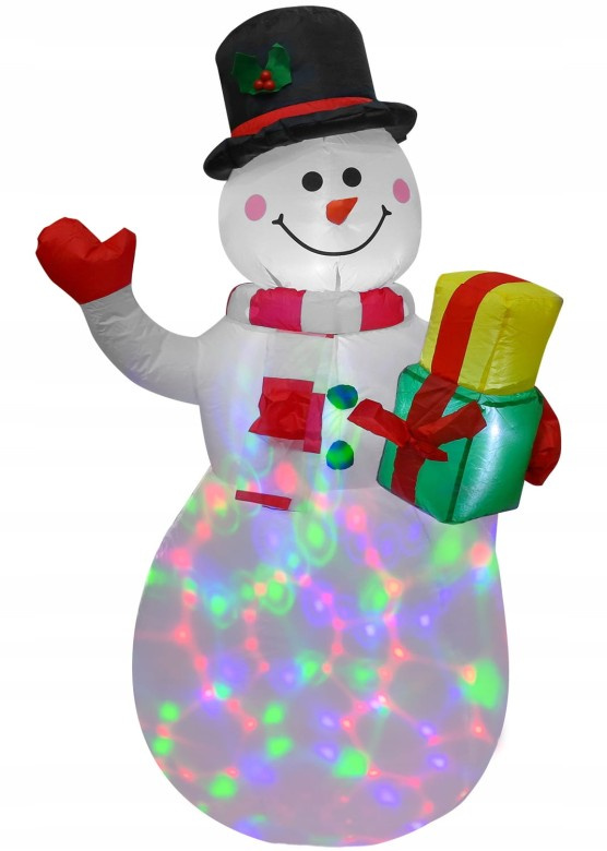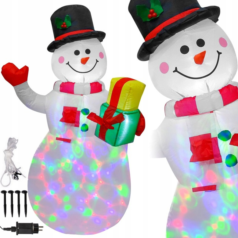 OMUL DE ZĂPADĂ cu cadou - MARE 150 cm cu iluminare LED E-943599 Om de zăpadă decorativ cu iluminare LED, care va arăta minunat în orice grădină. Va sublinia atmosfera festivă și va atrage atenția. Înălțime: 150 cm Lățime: 80 cm (în cel mai lat punct) DECORAȚIUNE FRUMOASĂ - CADOU PERFECT IDEAL Decorațiune de Crăciun auto-gonflabilă (pompă integrată) LED-uri pentru iluminarea decorațiunii - integrate în interior Material rezistent la intemperii Grad de impermeabilitate - IP44 Lungimea cablului de alimentare: 2 m Tensiune: 230V / 50Hz Compresor integrat și proiector LED rotativ Omul de zăpadă are un compresor integrat care îl umple cu aer. În plus, decorațiunea are un proiector LED rotativ încorporat, care o iluminează din interior. După lăsarea întunericului, omul de zăpadă strălucește în multe culori. CONȚINUTUL SETULUI 4 țăruși 2 frânghii 2 saci de greutate Omul de zăpadă este echipat cu două bucle din chingi la nivelul taliei, care servesc la stabilizarea figurii folosind 4 țăruși întinși pe 2 frânghii. Omului de zăpadă luminos i se adaugă în continuare greutate cu 2 pungi, care pot fi echipate cu greutăți și plasate în interiorul figurinei. DECORAȚIUNE REZISTENTĂ LA INTEMPERII Decorațiunea este echipată cu o sursă de alimentare cu protecție IP44.