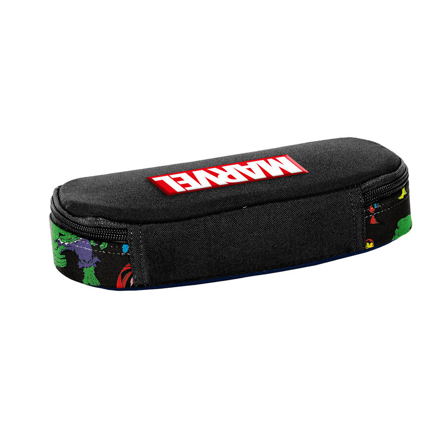 Pe capacul penarului este un buzunar cu fermoar pentru depozitarea mărunțișurilor.