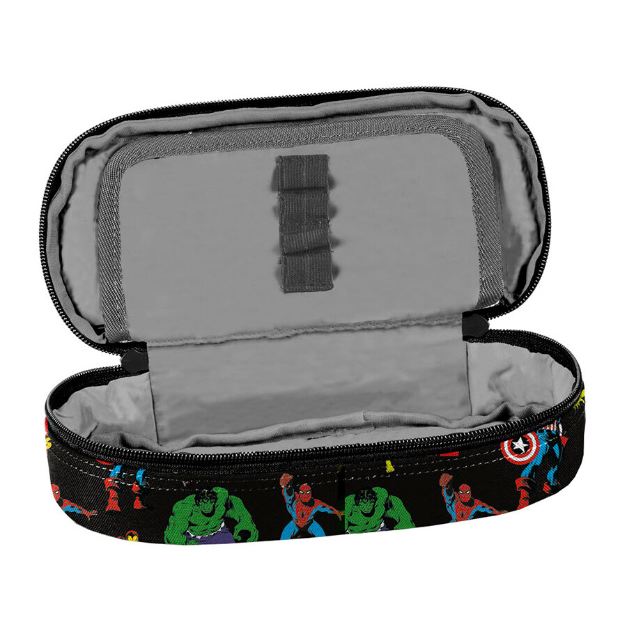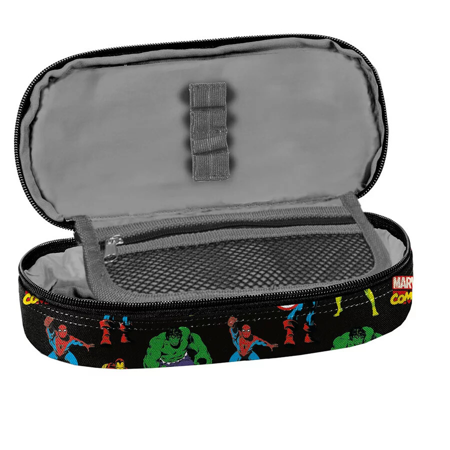 • Pe lângă clapetă, penarul are și un buzunar din plasă cu fermoar