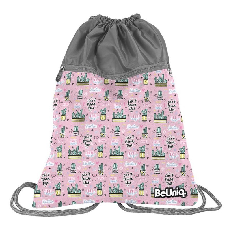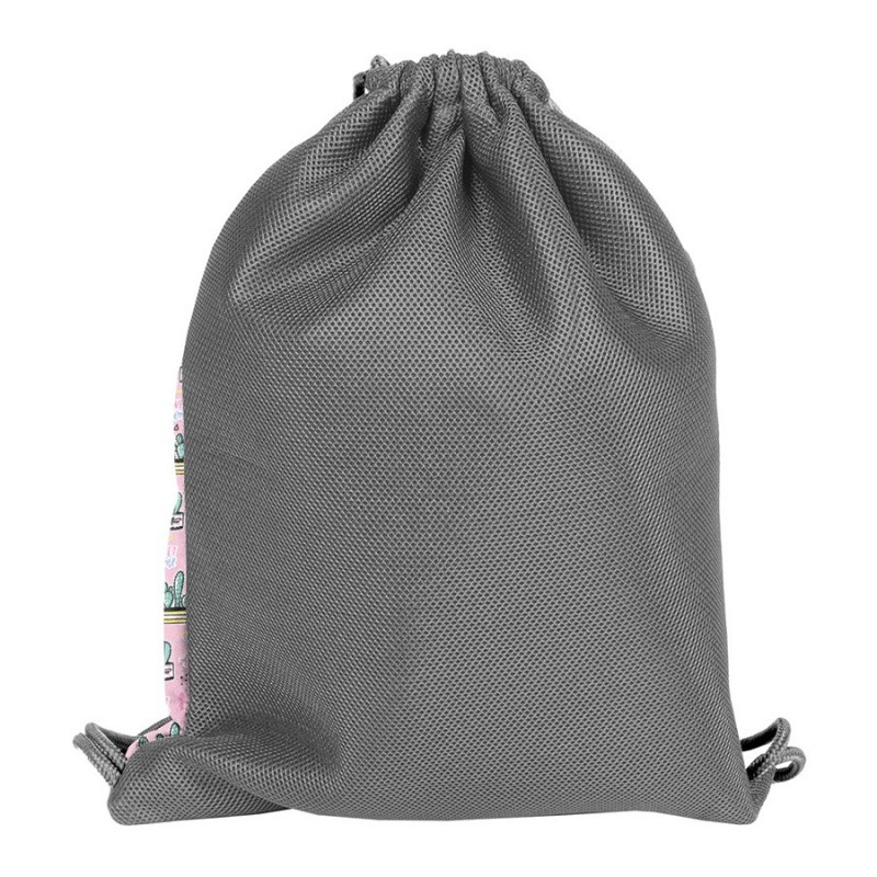 Șnururile groase și împletite permit purtarea genții pe spate sau pe umăr.Partea din spate a genții este întărită și acoperită cu plasă.