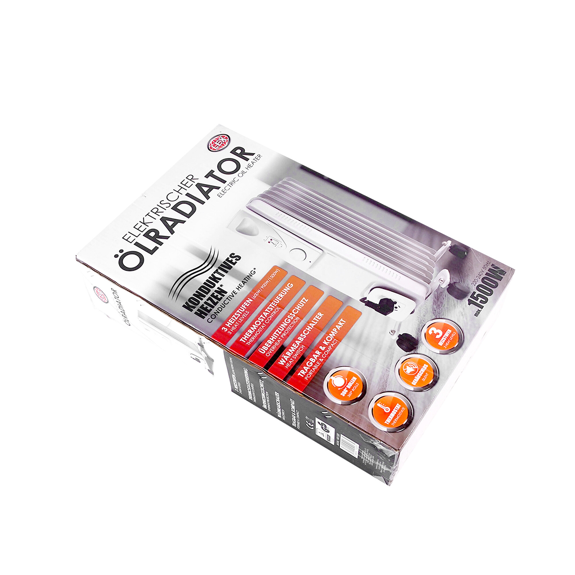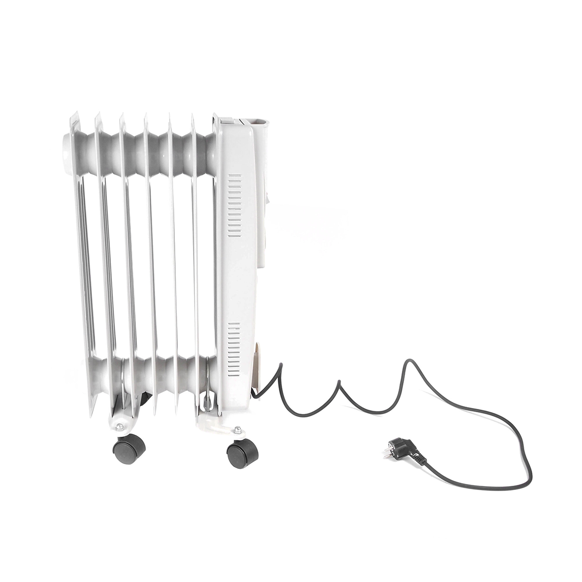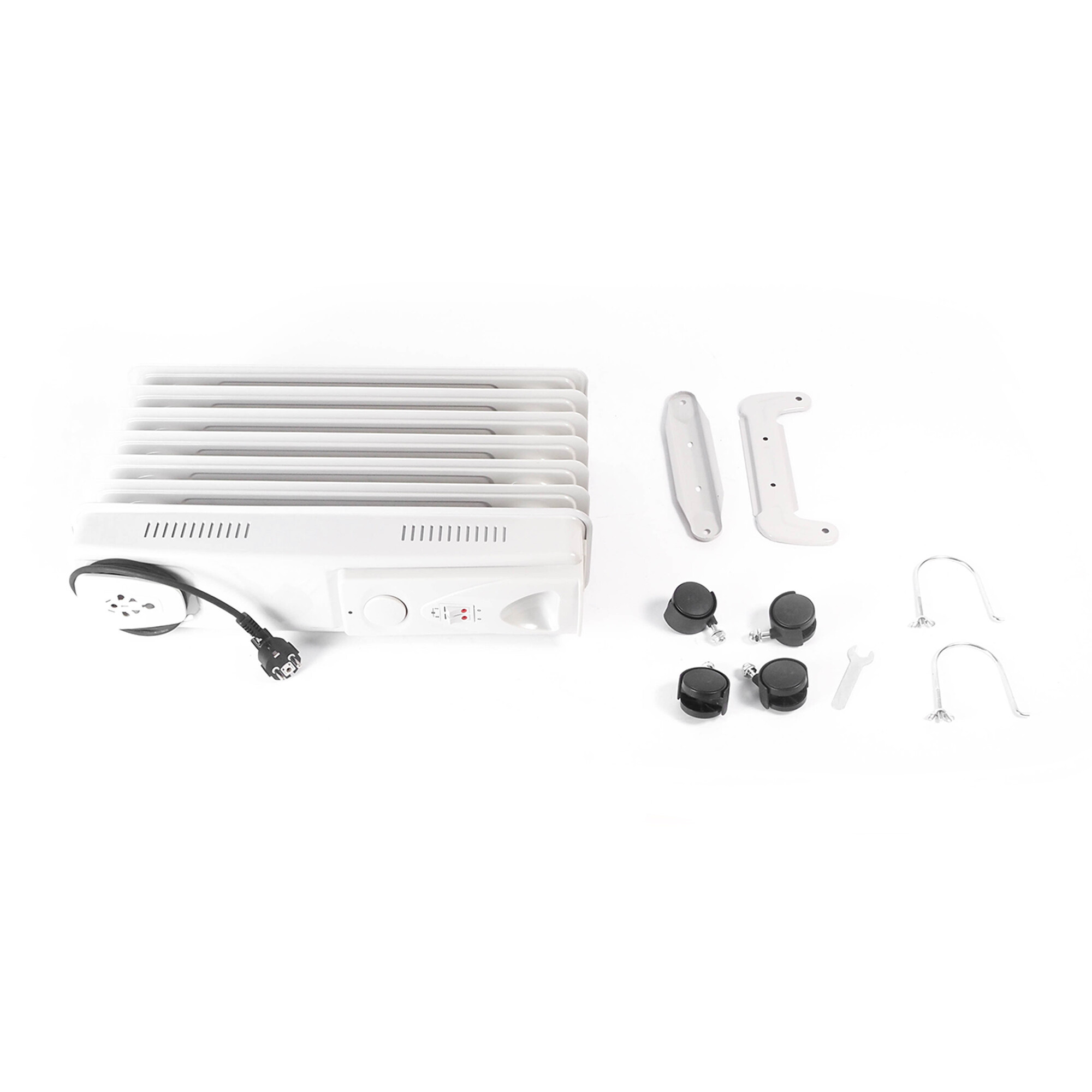 Radiatorul cu ulei este proiectat având în vedere practicitatea. Este echipat cu un sistem de înfășurare a cablului, ceea ce facilitează depozitarea acestuia și previne încâlcirea cablului. Comutatorul basculant și indicatoarele luminoase asigură o operare simplă și o vizualizare clară a stării actuale a radiatorului. Șapte lamele de dimensiuni aproximative 120 x 500 mm asigură o distribuție uniformă a căldurii în întreaga cameră.