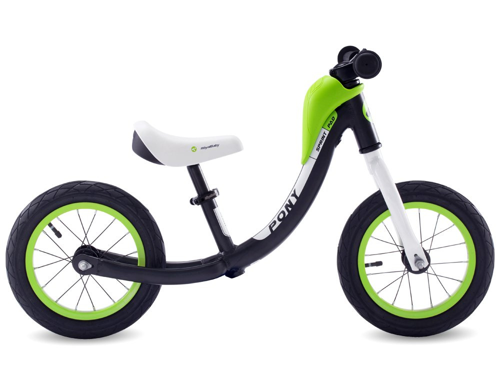 Bicicleta de echilibru PONY SPRINT cu roți gonflabile de 12 inch RoyalBaby este un vehicul ușor și confortabil de culoare neagră. Ideal pentru copiii de la vârsta de 3 ani. Bicicleta de echilibru este pusă în mișcare prin împingerea copilului cu picioarele.În timpul jocului, copilul își va exersa simțul echilibrului și coordonarea generală a mișcărilor, abilități atât de necesare pentru a merge ulterior pe bicicletă cu pedale.Datorită șeii reglabile, bicicleta va crește împreună cu micul nostru ciclist. Cadrul bicicletei a fost realizat din aluminiu, cu excepția furcilor din față. Pe cadrul bicicletei a fost montată o protecție din cauciuc pentru a proteja împotriva eventualelor lovituri. Construcția sa ușoară din ALUMINIU va asigura copilului manevrarea în siguranță în timpul mersului.RoyalBaby este o marcă de biciclete destinată copiilor. Produsele acestei mărci se caracterizează prin calitate înaltă a execuției, aspect atractiv și inovație. RoyalBaby garantează o călătorie sigură și plăcută fiecărui copil. Compania RoyalBaby se gândește și la părinți, în șa a fost plasat un compartiment în care a fost montată o curea, datorită căreia, după terminarea plimbării cu bicicleta, părintele va putea transporta cu ușurință vehiculul în orice loc.