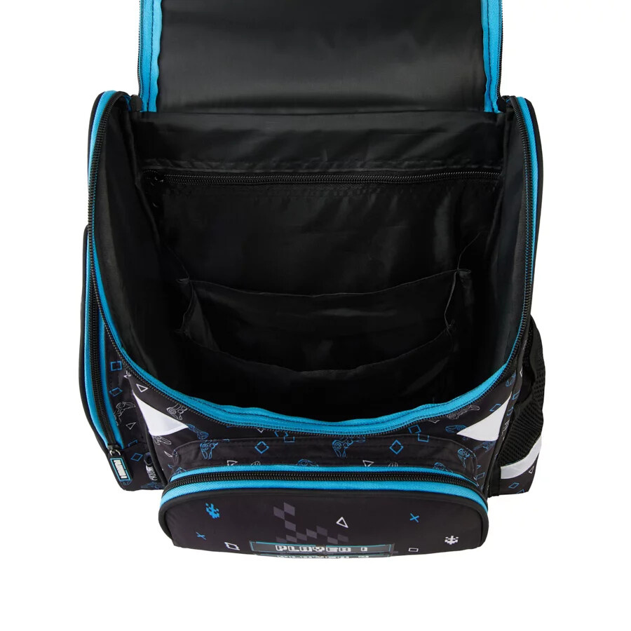 Servieta are un volum total de 15 litri și poate conține tot ce este necesar pentru învățământul școlar, inclusiv gustarea.