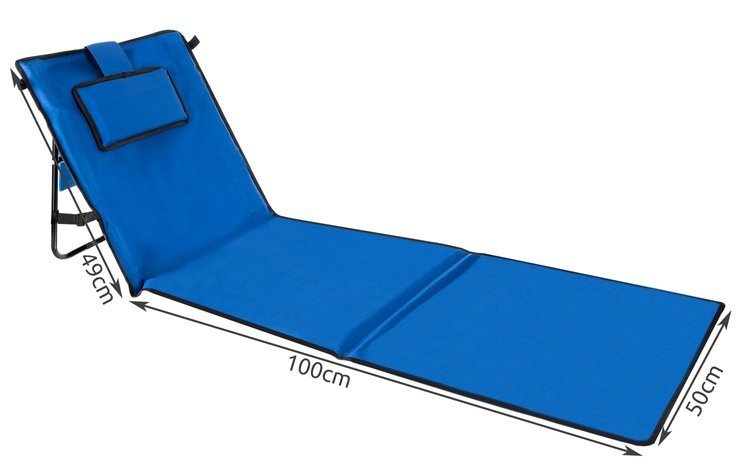 ? TRANSPORT UȘOR - salteaua de plajă cu spătar reglabil este un accesoriu extrem de ușor de transportat datorită construcției pliabile și greutății reduse. Dimensiunile saltelei pliate sunt 50 x 50 cm, iar cureaua de umăr vă va ușura cu siguranță drumul către plajă.