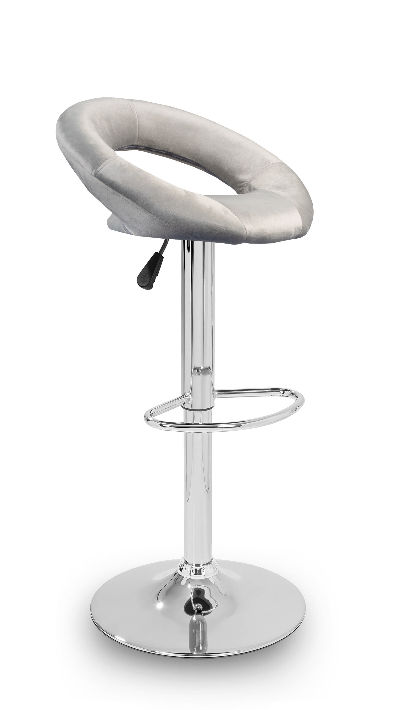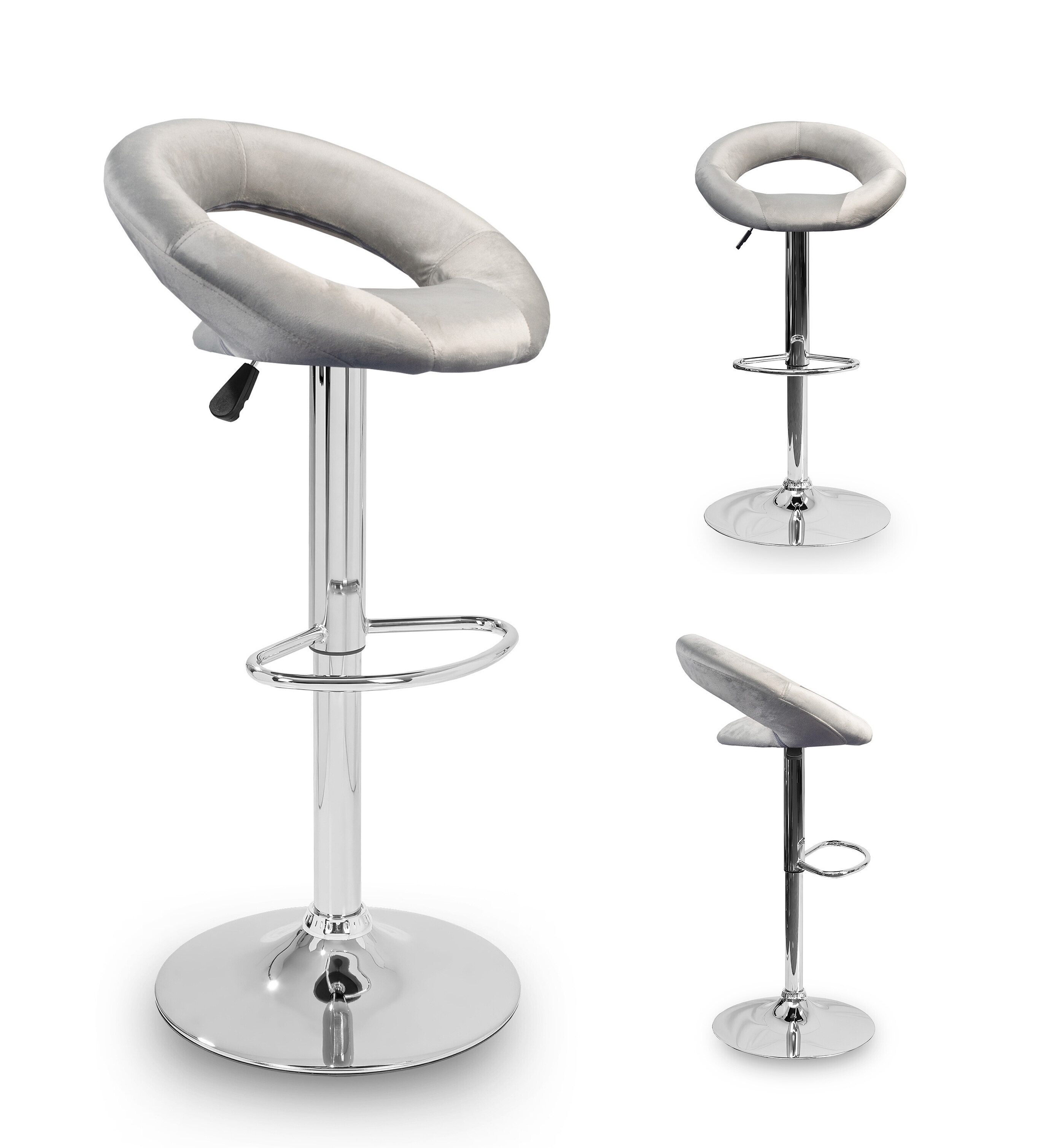 Scaunul se remarcă prin formele sale circulare, șezutul circular fiind conectat cu spătarul circular.Suprafața părții de șezut a scaunului de bar este din catifea.