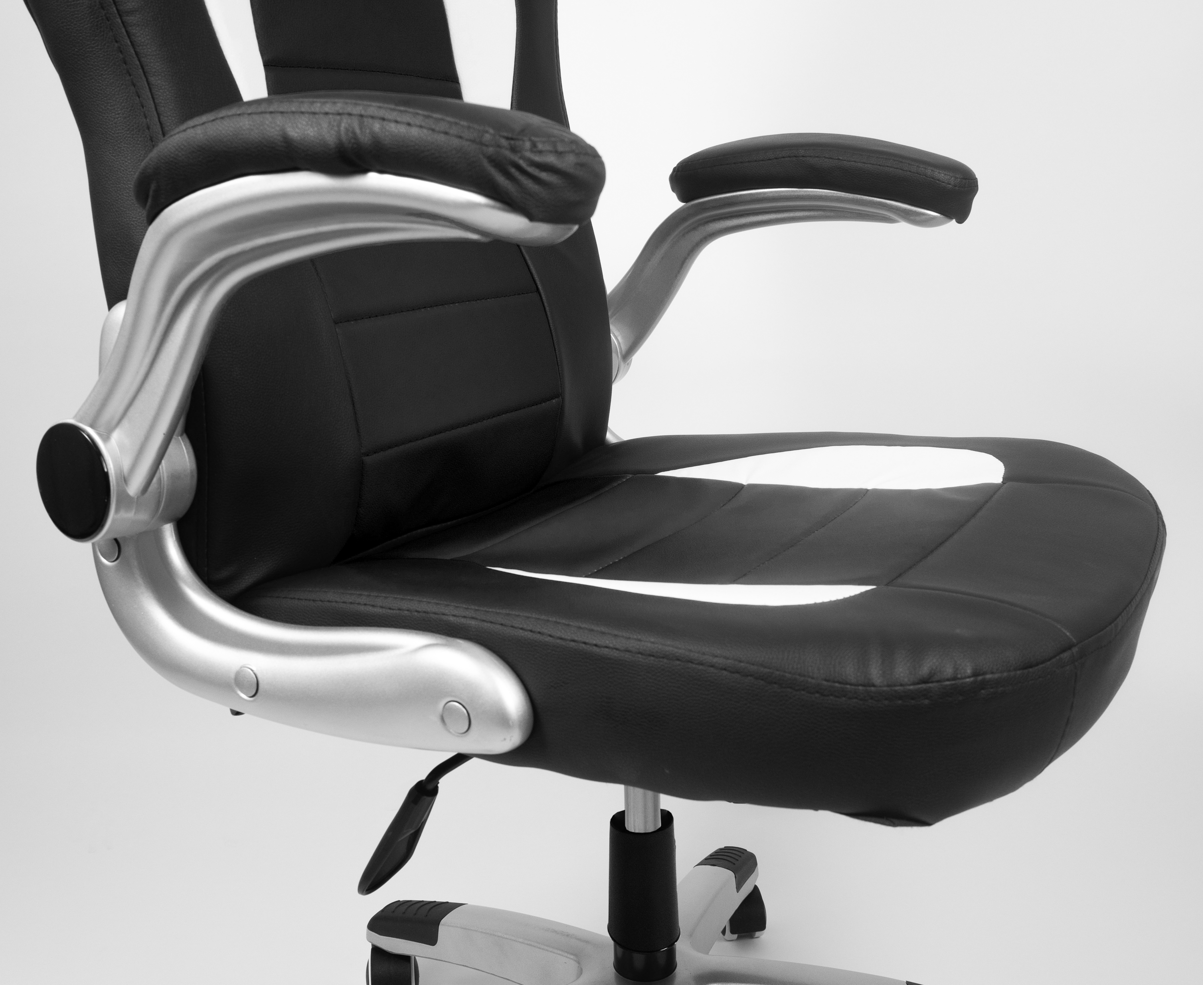 Confortul dumneavoastră va fi asigurat de o husă rezistentă din piele ecologică în culori atractive, un spătar înălțat, un șezut ergonomic și brațe rabatabile cu suprafață moale.