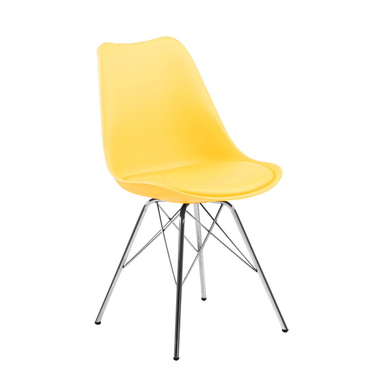 Scaunul este fabricat din polipropilenă de calitate și durabilă, cu o pernă acoperită cu piele artificială, în combinație cu un cadru din oțel.