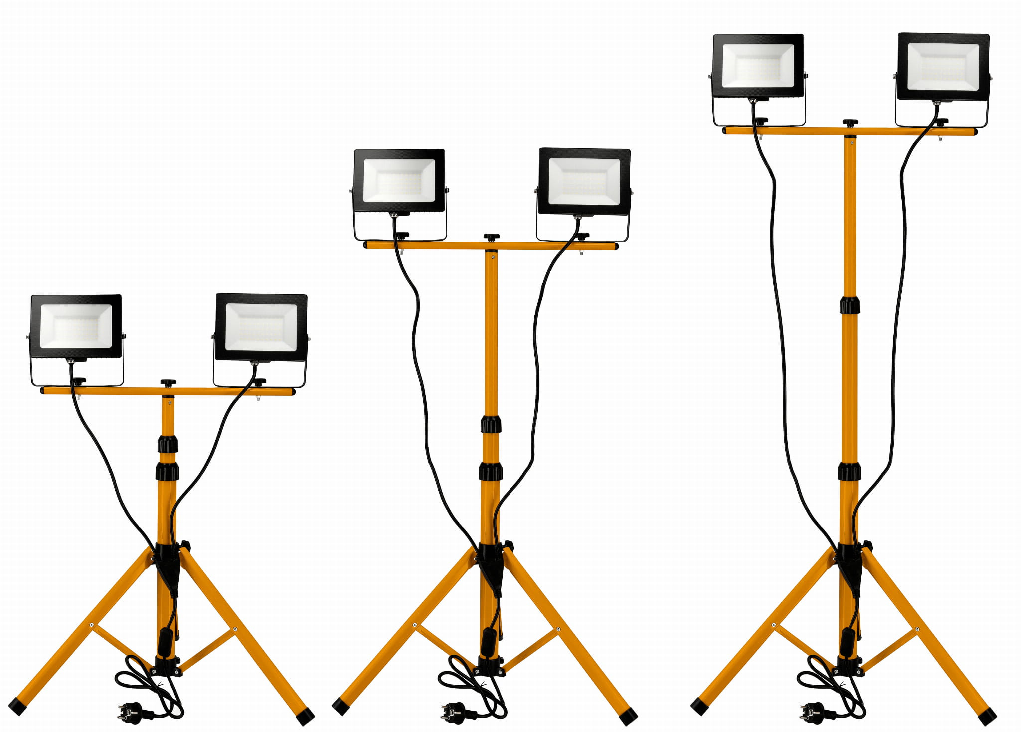 Trepiedul, care face parte din set, permite plasarea ușoară a reflectoarelor oriunde, ceea ce este foarte avantajos în special în lucrările de construcție, renovare sau grădinărit.