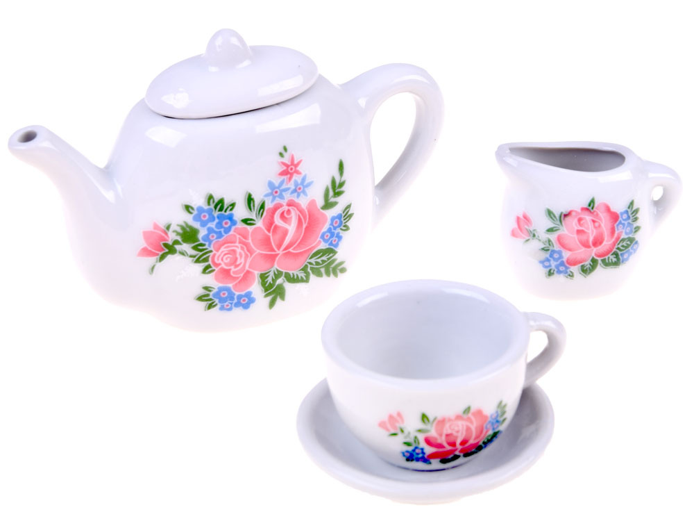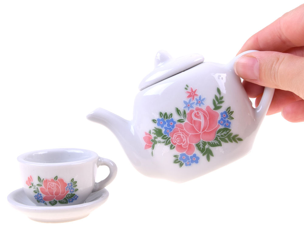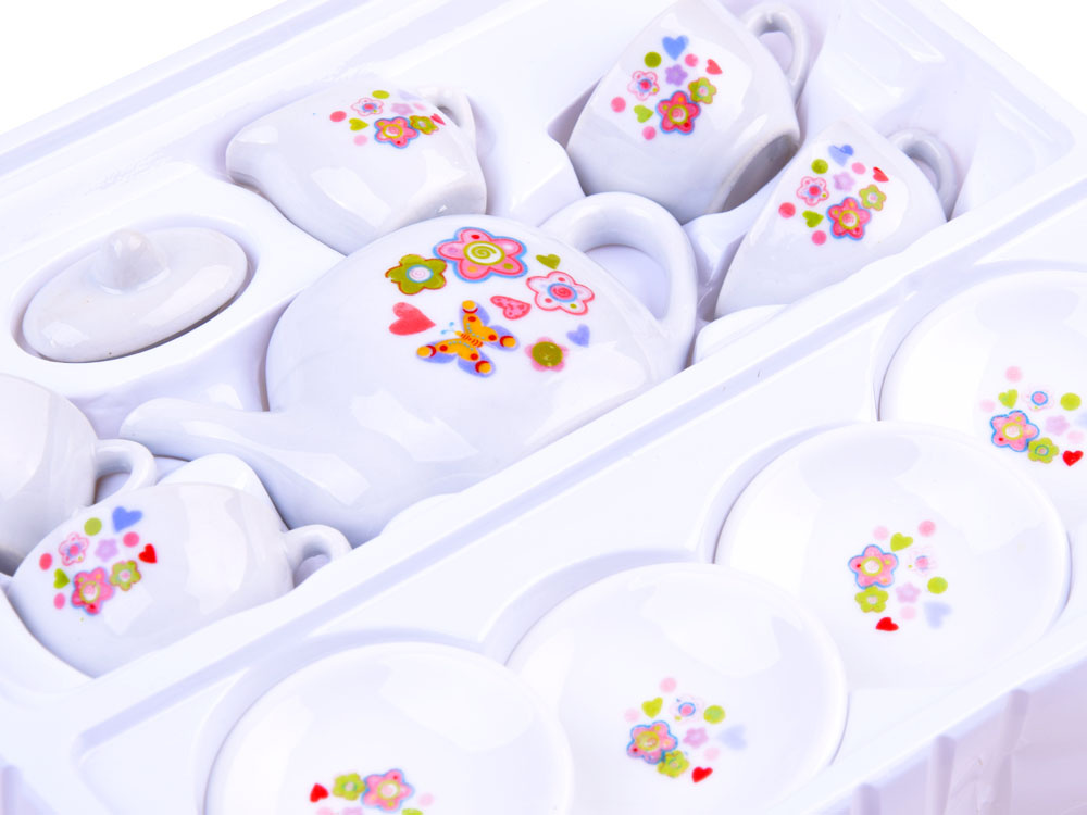 Setul este fabricat din ceramică și imită excelent un serviciu de mic dejun real. Copiii adesea le place să ajute părinții în bucătărie, așa că acum vor putea pregăti un ceai delicios și pentru păpușile și ursuleții lor.