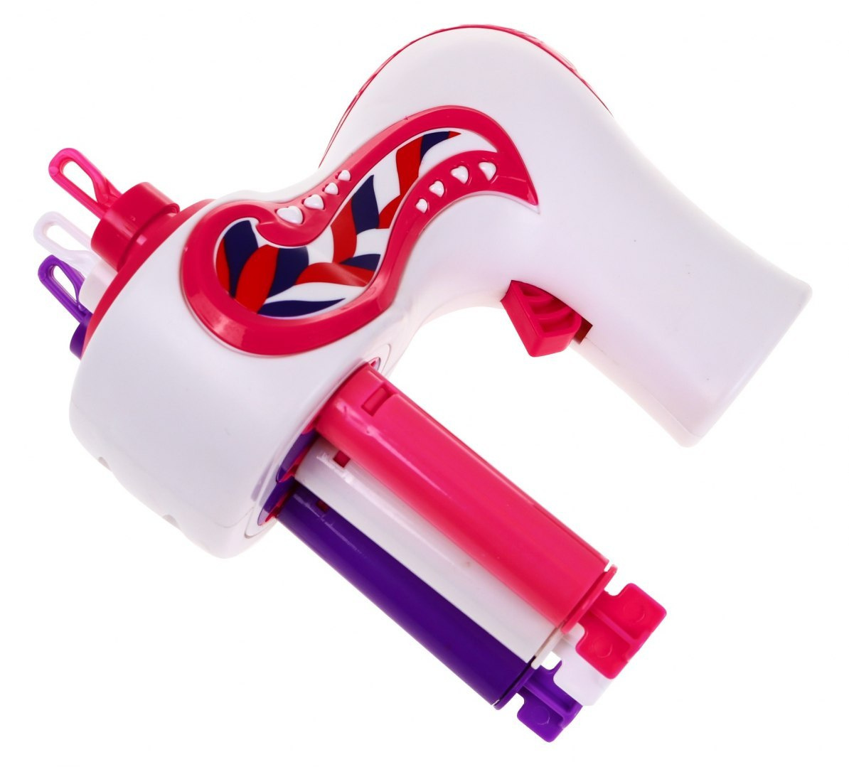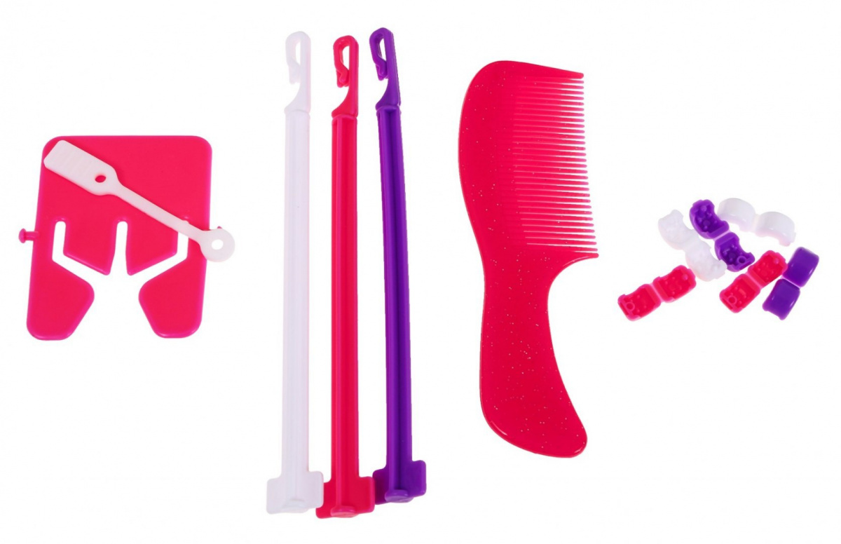 | - mașină de tricotat, - pieptene, - 6 x ornamente pentru păr, - separator de păr, - 3 cârlige pentru tricotat, - 20 elastice de păr. | |