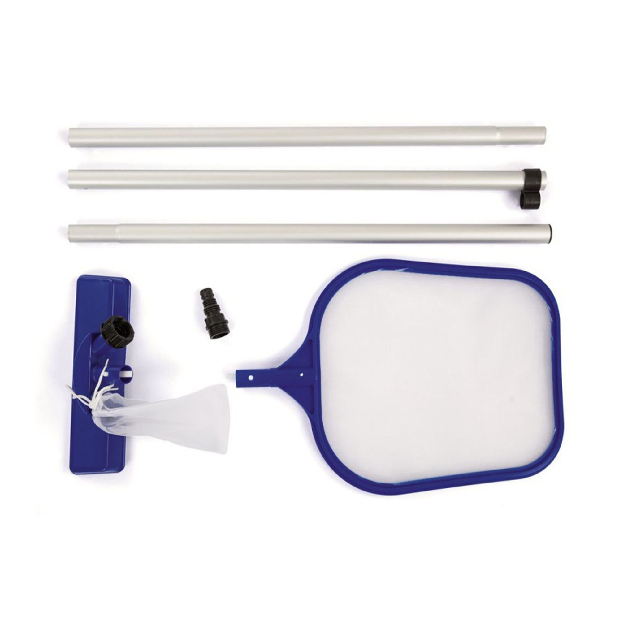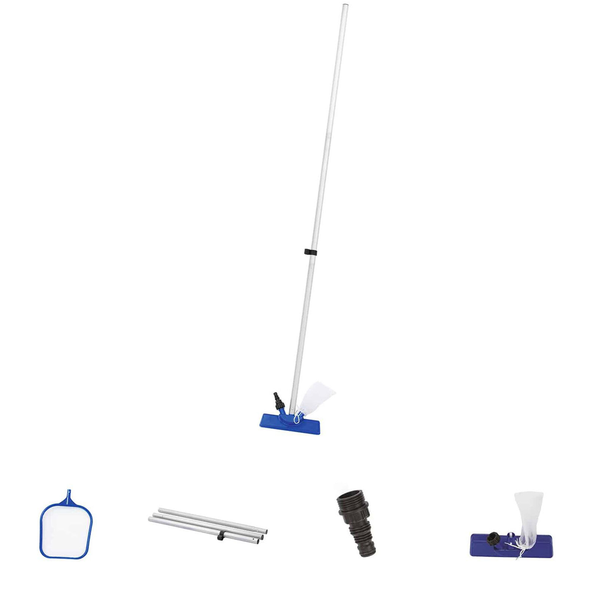 Setul de întreținere a piscinei Bestway 58013 este un set practic pentru curățarea regulată a piscinei și îndepărtarea impurităților. Setul conține o tijă ușoară cu capete interschimbabile pentru aspirare și ștergere.