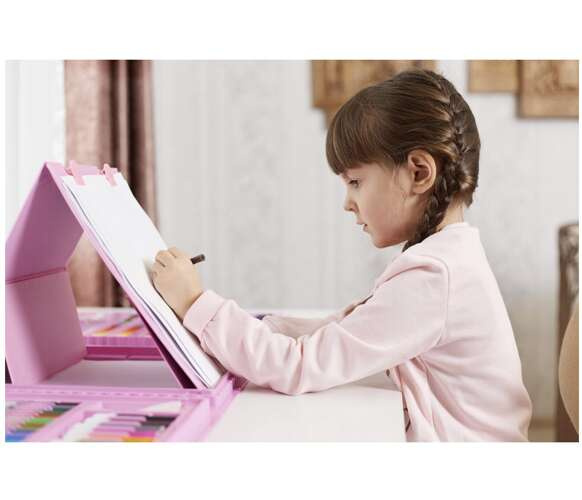 GEANTĂ PRACTICĂ - setul de artă pentru copii are o geantă practică cu compartimente, care este echipată cu 3 benzi de velcro și un mâner confortabil. Datorită acestui fapt, transportul valizei este confortabil și foarte simplu, iar conținutul nu se împrăștie. Fișierul Perfect pentru școală, grădiniță, afară sau la prieteni.